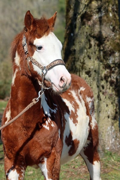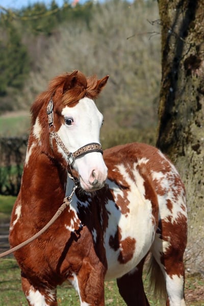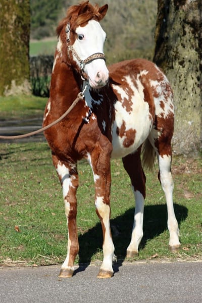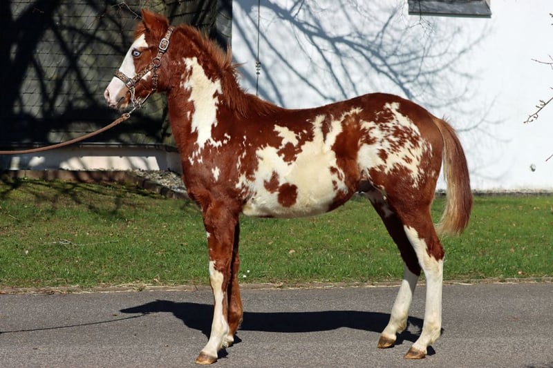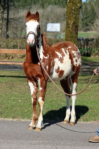 BOY BUENO LENA Sorrel Overo APHA Hengst Geboren: 07.07.2025 Endgrösse ca 153 cm 5 panel n/n