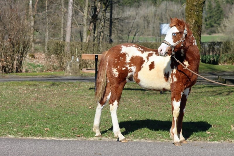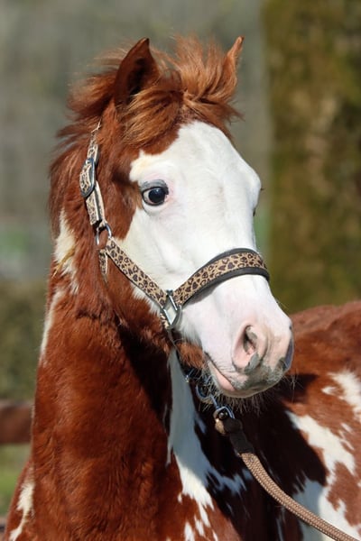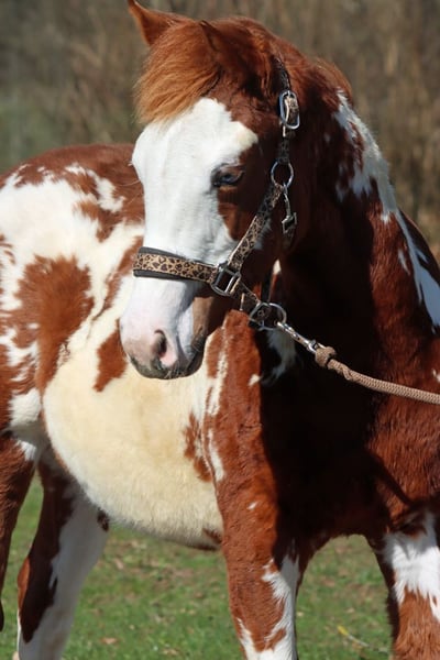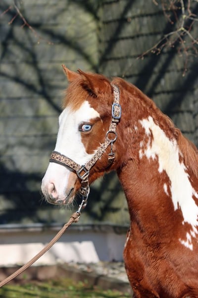 Caballo de raza Paint Overo alazán, semental