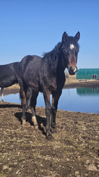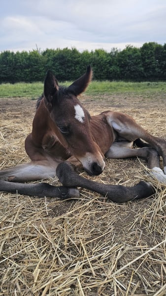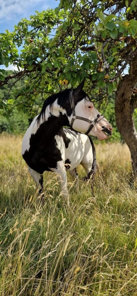 Dieser muntere junge Mann wurde am 20.06.25 geboren und sucht jetzt sein passendes Zuhause. Er lebt bis jetzt in einer kleinen Herde in 24/7 Weidehaltung mit weiteren Fohlen und anderen Pferden in unterschiedlichen Altersklassen. Er steht neuen Dingen immer neugierig gegenüber und lernt schnell. Mit seiner Mutter war er bereits auf dem Anhänger unterwegs, Hufegeben und den Beginn der Halfterführigkeit üben wir immer mal wieder. Ansonsten darf sich der Kleine frei entwickeln. Seine Mutter ist eine polnische Warmblutstute (1,60m) und sein Vater ein Paint Horse (ca. 1,54). Er ist gechipt, geimpft und besitzt einen Equidenpass (ohne Abstammung), entwurmt wird er regelmäßig. Für weitere Infos, Bilder oder auch ein persönliches Kennenlernen könnt ihr euch gerne melden.