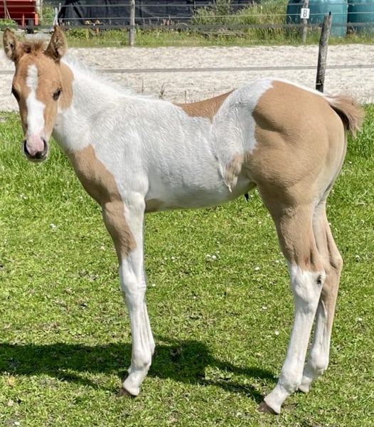 Ontdek deze prachtige American Paint Horse hengst, geboren in 2025, die zeker de aandacht zal trekken. Met zijn opvallende Tobiano-kleurpatroon in alle kleuren van de regenboog, combineert hij uitzonderlijke schoonheid met een indrukwekkende uitstraling. Deze jonge hengst beschikt over een goede bouw en een vriendelijke, nieuwsgierige aard. Hij toont al veel talent en potentieel voor diverse disciplines, of het nu gaat om western riding of recreatief rijden. Zijn evenwichtige temperament en natuurlijke aanleg maken hem tot een veelbelovende partner voor zowel beginnende als ervaren ruiters. Zijn gezonde en sterke bouw garandeert een lange en actieve carrière. Deze American Paint Horse is niet alleen een lust voor het oog, maar ook een betrouwbare en veelzijdige metgezel. Ben je op zoek naar een opvallende en veelbelovende jonge hengst die zich snel zal ontwikkelen tot een schitterende western-ridder? Neem gerust contact met ons op voor meer informatie of een kennismaking met deze bijzondere American Paint Horse hengst.