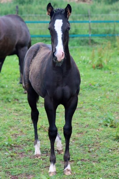 CHEYENNES GUNS N JUJU Black Splash APHA stallion Born: 09.02.2024 Final height approx. 152 cm 7 panel N/N Ee aa n/SW1