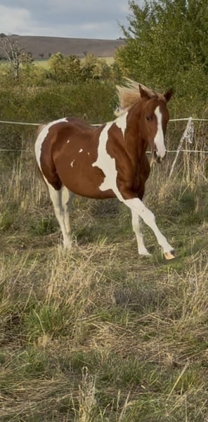 Verkaufe diesen wunderschönen Charakterstarken 2,5 jährigen Hengst, welcher ein förderndes Zuhause für immer sucht. *Docs fast Gun* ist am 27.05.2023 geboren und überzeugt durch sein beeindruckendes Tobiano-Farbmuster in allen Farben, das sofort ins Auge fällt. Er begeistert jeden durch sein freundliches Wesen und ist gegenüber seiner Bezugsperson sehr anhänglich. Er hat zurzeit ein Stockmaß von ca 1,50m und bringt APHA Papiere und den PHCG Pass mit. Docs Fast Gun hat Reining, Allround- sowie Cowhorse - Gene und zeigt viel Potenzial für die weitere Ausbildung und wird sich später wohl gut für Reiter, die ein zuverlässiges und charmantes Pferd für Freizeit oder auch im Westernbereich suchen eignen. Im Cowhorse Bereich zeigt er schon spielerisches Interesse. Seine robuste Konstitution und sein angenehmer Charakter machen ihn je nach Ausbildung zu einem treuen Begleiter für spätere Ausritte und entspannte Stunden im Gelände, Spaziergänge und machen ihn somit zu einem idealen Begleiter für Reiter aller Erfahrungsstufen. Er ist Kerngesund , freundlich im Umgang, sehr gut sozialisiert, kennt das Fohlen ABC, ist geimpft und entwurmt, geht ohne Probleme in den Hänger (auch ohne Trensung) rein, kennt bereits Fellsattel, leichte Gewichte, Hunde, Katzen und Landmaschinen und zeigt dabei seinen ruhigen und ausgeglichenen Charakter. Ebenfalls kennt er Stall und Koppelhaltung. Auf der Koppel stand er immer in einer gemischten Herde und hat sich dort unauffällig gezeigt. Zurzeit steht er mit seinem jüngeren Hengstkumpel (1,5 Jahre) zusammen, mit welchem er sich sehr gut versteht. welcher zur Abgabe ebenfalls bereit steht. Es wäre auch ein Verkauf beider Junghengste sehr gerne zusammen möglich. Beide Hengste zeigen keine Unarten. Die letzten Bilder zeigen ihn als Fohlen mit seiner Mutter Er kann natürlich gern besichtigt werden . Weitere Bilder und Videos könnt Ihr auf Anfrage gerne erhalten.