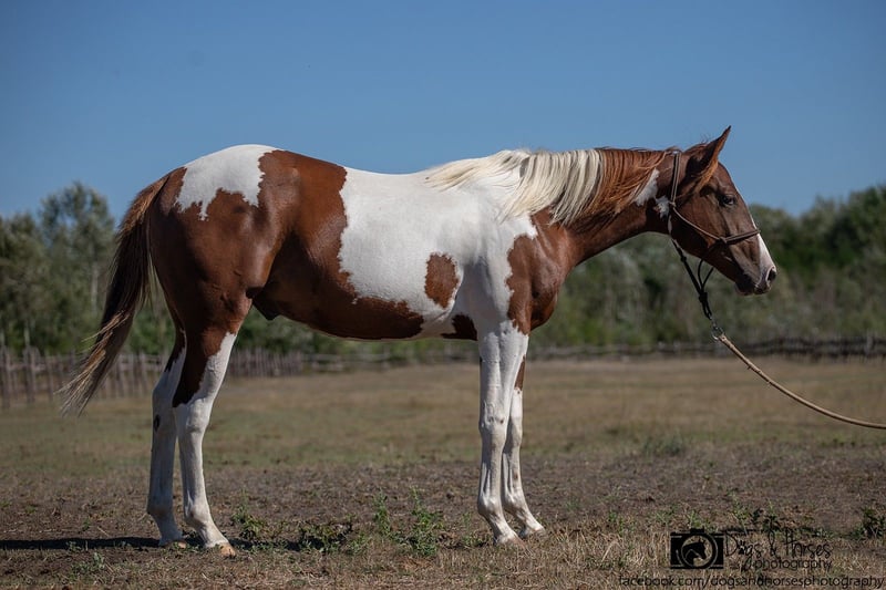 Verkaufe American Paint Horse Hengst, geb. 2024, mit beeindruckendem Tobiano Farben. Dieser junge Hengst besticht durch seine elegante Statur und sein vielversprechendes Potenzial im Western Riding. Mit einem geschätztem Endstockmaß von ca. 151 cm ist er perfekt für ambitionierte Reiter, die einen vielseitigen und gut Partner suchen. Seine freundliche und aufgeschlossene Art macht ihn zu einem angenehmen Begleiter im Umgang und im Training. Dank seiner typischen Farbgebung und seinem charismatischen Erscheinungsbild ist er ein echter Blickfang auf jedem Turnier oder bei der Freizeitgestaltung. Dieses junge American Paint Horse bietet eine hervorragende Basis für eine erfolgreiche Karriere im Westernreiten oder als Zuchtpferd. Bei entsprechender Förderung verspricht er eine vielversprechende Zukunft und viel Freude für einen engagierten Reiter. Das Pferd steht aktuell in Ungarn / Izsák auf der El Bronco Ranch.