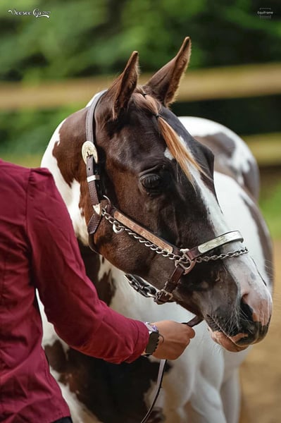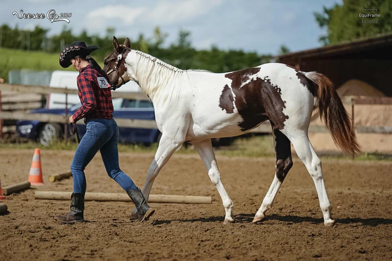 * 5. 5. 2024 APH Sorrel tovero colt (rabicano) 7 panel negatives This one will be absolutly perfect as your next show horse. Lovely mind, very clever and absolutly perfect posture with streight legs. He will be tall, so perfect choice for HUS, all around etc. His pedigree is full of high sound names. He is vaccinated for F, T, EHV, regularly trimming and devorming. He knows box, transport, loves water and grooming. He started in showmanship and in-hand trail on his first show. Very easy to load, not lunging (I started on lunge, when horses are older) Last photos dam (15,1 hh) and sire (16,1 hh). APHA certificate done and equine passport too. We can organizate the transport.