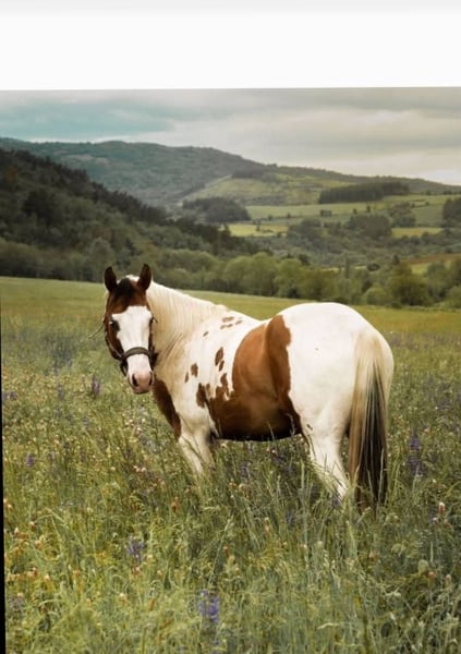 Tobiano palomino painthengst, volledig gezond, zeer vriendelijk. Homozygot voor het Tobiano-gen. Negatief op alle zes panelen.
