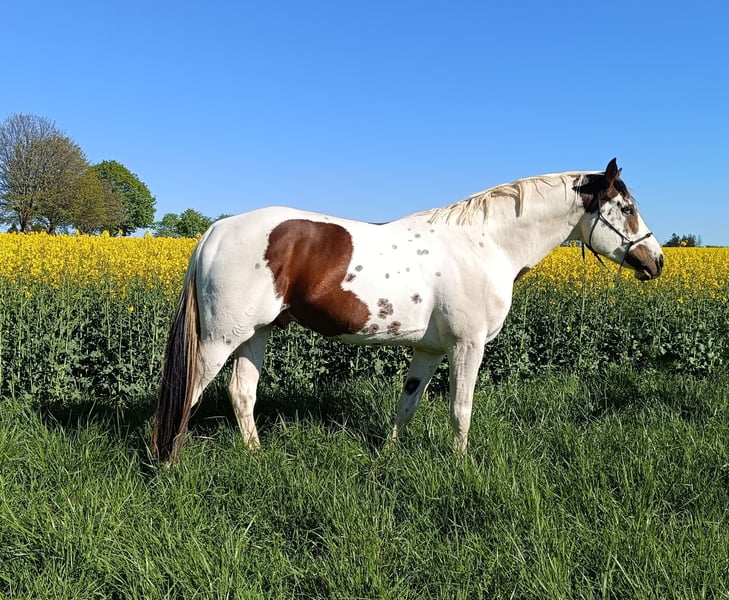 For Sale: Stunning American Paint Horse Stallion – Tovero All-Colors Discover the beauty and versatility of this exceptional American Paint Horse stallion, born in 2020. Standing at 162 cm, he boasts a striking Tovero coat pattern that showcases a captivating blend of all colors, making him a true standout in any herd. This young stallion is not only visually impressive but also comes from a reputable breeding background, ensuring excellent genetics and potential for various disciplines. His balanced conformation and vibrant presence make him an ideal choice for enthusiasts seeking a versatile and eye-catching equine partner. Whether you're interested in show, breeding, or performance, this American Paint Horse offers a remarkable combination of beauty, lineage, and potential. Don’t miss the opportunity to add this remarkable stallion to your collection. He Is 4 years breeding stallion, 2 years under saddle. ( last year ( 2025) ONLY breeding not ridding, but Is very easy to ride him) For more information and to arrange a viewing, please contact us 😊