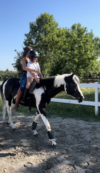 KIDS CLASSIC BADGER Stunning American Paint Horse, solid (despite that, very calm), 9 years old. Height: 15.0 hh / 15.1 hh at the withers. IMPORTANT GENETICS (son of ERC KOLOR ME KOOL, who passed away a few years ago). He participated in the futurity (morphology class) at just 6 months old at Verona Horse Fair, winning the class and placing second in MOST COLOR! US DOCUMENTS and COGGINS TEST up to date. An exceptional horse with a heart of gold! I am looking for a five-star family, I want the best for him because he truly deserves it! He loves jumping, enjoys going for walks... fearless in every situation. He is regularly ridden in a halter and free in the paddock. He has been with me since he was 6 months old. Always barefoot (never shod). Therefore, he has only one owner! He is in perfect health, the only reason I am looking for a new family is because I have made different life choices. NO TIMEWASTERS OR DEALERS, please. For more information, contact +39 3917059140.
