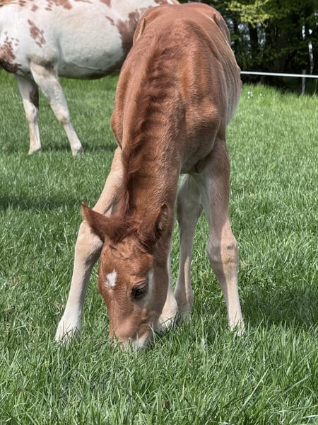 Verkaufe American Paint Horse Hengst – 02.04.2026 Anpaarung: Gunsparks Lohrberg Ranch x Sallys Sweet Candy Dieser charmante kleine American Paint Horse Hengst besticht durch sein freundliches und souveränes Verhalten, zudem hat er ein sehr gutes Fundament und schöne Bewegungen. Mit einem Stockmaß von ca. 148-154 cm Endmass, ist er ein kompakter und eleganter Nachwuchshengst, der sich ideal für Freizeit und Sport eignet. Seine Vollschwester kann hier in der Herde besichtigt werden, der Vollbruder ist bereits verkauft. Beide wurden erfolgreich auf einer PHCG Zuchtschau vorgestellt. (Prämienfohlen 1a/1b) Schwester: Champion of Champion Futurity 2023 PHCG Bei Interesse freue ich mich auf Ihre Kontaktaufnahme, um weitere Informationen auszutauschen oder einen Besichtigungstermin zu vereinbaren.