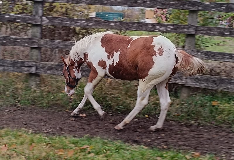 SPOOKSWHIZINHOLLYWOOD "Woody", Sorrel Tovero Paint-Hengst, Jänner 2025 geboren. Sein Vater IFWHIZSWEREGUNS (ein Vollbruder im Blut zu NRHA $ 9 Mio Sire und dem ersten NRHA Triple Crown Winner SPOOKS GOTTA WHIZ) hat ein LTE von $ 118.636. Seine Mutter W GUNSMOKES SPRING hat ein ROM in Ranch Riding Amateur und mehrere Bronze Medaillen in Ranch Riding auf der European Paint Horse Championship zu verzeichnen. Ihr erstes Fohlen (Toochicforhollywood) hat ein ROM in Green Ranch Riding und wurde bei jedem seiner IRHA-Starts (Ranch Riding, Ranch Trail u. Ranch Rail Pleasure) Moneyearner. Woody ist mit seiner Abstammung/Genetik, seinem Exterieur, seiner Zeichnung und seiner Athletik sowohl für sämtliche Ranchklassen, als auch für Reining bestens geeignet. Aufgrund seines liebenswerten Charakters wird er jedoch auch für Pferdemenschen abseits der Turnierplätze ein verlässlicher Begleiter sein. 7 Panel N/N. Er kann ab sofort mit APHA Papier und Equidenpass in sein neues zu Hause übersiedeln. https://www.allbreedpedigree.com/spookswhizinhollywood Kontakt bitte per Email: wcs@gmx.at