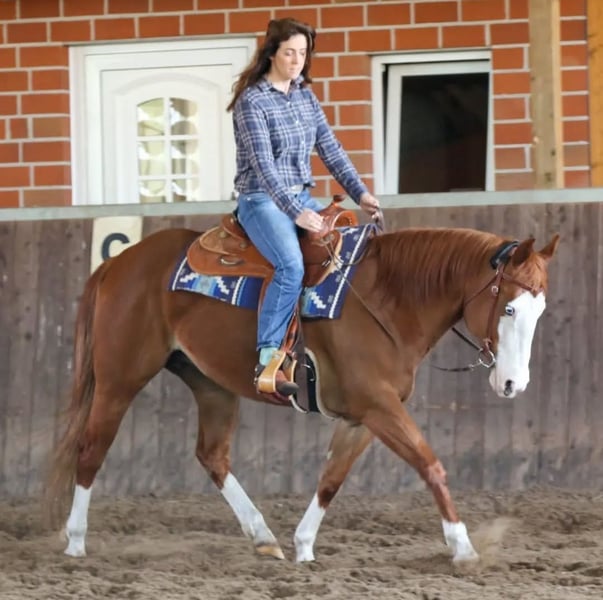 Najla ist eine ganz tolle und liebe Stute die hier allerdings einfach viel zu kurz kommt. Najla hat in jungen Jahren eine klassische Westerngrundausbildung bekommen, wurde aber nie geshowt oder weiter gefördert. Sie kann ein paar wenige Manöver wie z.B. den Spin. Aber ich würde sie eher als gut ausgebildetes Freizeitpferd beschreiben. Bei uns steht sie im Offenstall mit unseren Minishettys zusammen ist lieb im Umgang und auch gut zu reiten. Allerdings steht sie eigentlich mehr als Beisteller für die Minis und hier liegt auch der Grund für die Abgabe. Mit ihren 10 Jahren führt Najla quasi ein Rentnerleben und das ist einfach viel zu schade....hier muss ich ehrlich und fair gegenüber dem Pferd sein und meine Wendybrille ablegen. Sie ist fit und gesund und kann noch viele Jahre da draußen einen Menschen wirklich glücklich machen und sich selber natürlich auch....denn auch die regelmäßige Bewegung ist für die Gesunderhaltung des Pferdes das A und O. Ich sehe Najla eher als Frauenpferd. Sie ist eher gemütlich unterwegs und passt eigentlich gut mit auf. Wenn von oben nicht die passende Hilfe kommt dann bleibt sie lieber stehen. Im Gelände ist sie brav unterwegs und geht auch alleine....aber auch das ist hier leider viel zu kurz gekommen. Sie kann aber auch sehr eigensinnig sein. Bei neuen Dingen und wenn ihr was nicht gefällt versucht sie erstmal ihren Standpunkt klar zu stellen. Wenn sie aber erstmal verstanden hat das diese sachen doch nicht so schlimm sind arbeitet sie wieder gut mit....eigentlich ein Grundehrliches Pferd. Najla läuft bei uns Barhuf und im Winter wird sie eingedeckt. Ein kleines Manko hat sie allerdings. Sie hat ein wenig mit den Bronchien zu kämpfen, auffällig ist es hier während der Pollenzeit. Sie wird bei uns in der Zeit Inhaliert bekommt aber sonst bisher keinerlei Medikamente oder ähnliches....deshalb wäre ein Platz im Offenstall wünschenswert....auch wenn Najla selbst lieber Boxenpferd wäre. Die Abgabe fällt mir nicht leicht denn sie ist mein persönliches Traumpferd....aber unter den Umständen das ich ihr einfach nicht die Aufmerksamkeit schenken kann die sie eigentlich absolut verdient, dann muss man zum wohl des ponys handeln und nicht anders rum. Najla würde bei Abgabe ihre komplette Ausrüstung mitbringen inkl. gutem Markensattel. Da es sich hier um eine Vernunftabgabe handelt und nicht um einen Notverkauf habe ich Zeit das passende Zuhause für Sie zu finden. Ein gutes zuhause steht hier an erster Stelle daher Platz vor Preis (aber natürlich im realistischem Rahmen) Sie kann nach Absprache jederzeit besichtigt werden. Und bei weiteren Fragen stehe ich selbstverständlich gerne zur Verfügung.