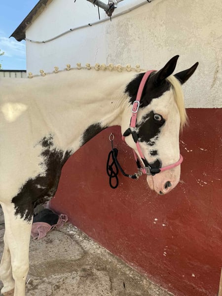 Se vende yegua paint horse Daniella RM Yegua 10 años 1.55 a la cruz aprox tiene dos ojos azules. Hemos hecho de todo con ella clases y excursiones por el campo Salta en recorrido 90 y en salto suelto 1m. Es buena de transportar y de herrar. Tienen todo al día herrador, dentista, vacunas y desparasitante. El precio es algo negociable