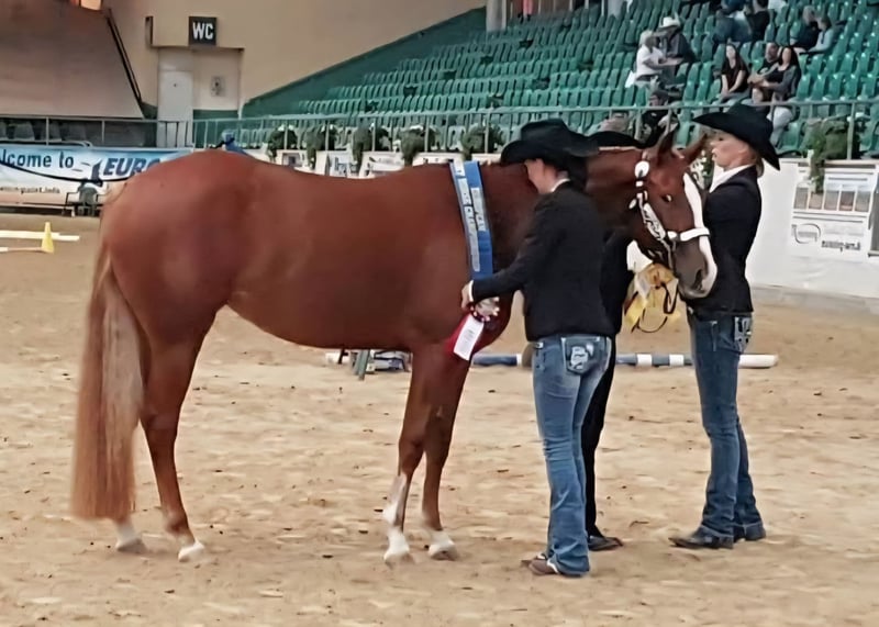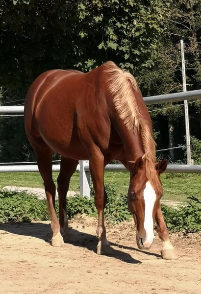 Świetna klacz Paint Horse (2015) szuka nowego domu jako wygodne, niezawodne koń do jazdy rodzinnej. Wyobrażamy sobie ją również jako klacz hodowlaną. Do tej pory nie miała źrebaka, ma świetne pochodzenie i 6-panel n/n. PEACHES była wcześniej z powodzeniem pokazywana i wysoko oceniana na wystawach hodowlanych. Ta piękna klacz jest absolutnie dobrze wychowana i wykształcona, jeżdżą na niej dzieci i zajmują się nią, czasami chodzi na lonży z najmłodszymi, żyje w boksie otwartym, chodzi bez podków i zna również krótkie przejażdżki w lesie. Szukamy miejsca jako koń do rekreacji i dla rodziny dla dzieci lub lekkich jeźdźców, ponieważ niestety jest mało odporna na stres i presję (zgrzytanie zębami, brak innych złych nawyków - zęby robione co roku) i czasami jest wrażliwa w okolicy ISG (była raz zastrzykiwana). Gdy jeździ się na niej w halterze, z niewielkimi wymaganiami, lub gdy jeżdżą na niej dzieci, nie pokazuje tego zachowania. Peaches uwielbia pracę z ziemią, jest bezproblemowa i bardzo kochana... znacznie poniżej wartości! Lokalizacja: Górna Austria.