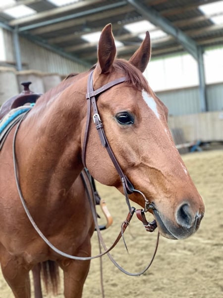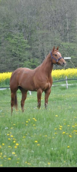 Zum Verkauf steht die zehnjährige Paint-Horse-Stute "Amazing Hot Diamond" (Crystal). Sie ist ein einfarbiges Paint in der Farbe Chestnut und stammt aus der Abstammung One Hot Krymsun x JJ Invest N Diamonds. Crystal besitzt volles Papier und befindet sich seit ihrem Absetzen in meinem Besitz. Ihre Ausbildung erfolgte ruhig und schonend, ohne übermäßigen Trainingsdruck. Zeitweise war sie im leichten Beritt, wo sie freizeitmäßig und in Ruhe weitergebildet wurde. Sie wird western geritten und gilt als unverbraucht, da sie bislang keine Turniererfahrung hat. Seit zwei Jahren wird sie regelmäßig mit Unterstützung einer Trainerin gearbeitet und zeigt eine konstante, positive Entwicklung. Unter dem Sattel reagiert Crystal fein auf die Hilfen und benötigt daher eine sensible, klare Reiterhand. Auf dem Reitplatz und in der Halle arbeitet sie konzentriert und stets bemüht mit. Manche Lektionen brauchen bei ihr etwas Zeit, um sie sauber abzurufen, doch mit Ruhe und Struktur setzt sie Aufgaben zuverlässig um. Aktuell wird sie auch von einem 14 jährigen Mädchen zuverlässig geritten, mit dem sie aufmerksam und motiviert zusammenarbeitet. In der Bodenarbeit ist Crystal sicher und gut gefestigt. Führen und Longieren funktionieren jederzeit problemlos. Durch regelmäßige Bodenarbeit verfügt sie über ein stabiles Fundament aus Vertrauen, Kommunikation und Grundgehorsam. Im Gelände zeigt sie sich grundsätzlich sicher und motiviert. In neuen oder besonders aufregenden Situationen orientiert sie sich gerne an einer erfahrenen Bezugsperson. Mit ruhiger, klarer Führung geht sie zuverlässig – auch alleine – voran. Im täglichen Umgang ist Crystal freundlich, unkompliziert und sehr menschenbezogen. Putzen, Führen und alltägliche Abläufe meistert sie entspannt. Aktuell ist sie vierfach beschlagen, was sie problemlos toleriert. In der Herde ist sie verträglich, jedoch eher ranghoch. Zurzeit steht sie nachts in der Box und tagsüber auf dem Paddock; im Sommer verbringt sie den Tag auf der Wiese. Aufgrund ihres Wesens und ihrer Ausbildung eignet sich Crystal ideal als zuverlässige Freizeitpartnerin in der Westernreitweise für Reiterinnen oder Reiter, die ein sensibles und motiviertes Pferd suchen. Für weniger erfahrene Reiterinnen oder Reiter kann sie geeignet sein, sofern ein Trainer unterstützend eingebunden ist und für klare Struktur sorgt. Dank ihrer Abstammung könnte sie auch für Zuchtinteressierte interessant sein. Eine Abgabe erfolgt ausschließlich in pferdegerechte und passende Hände.
