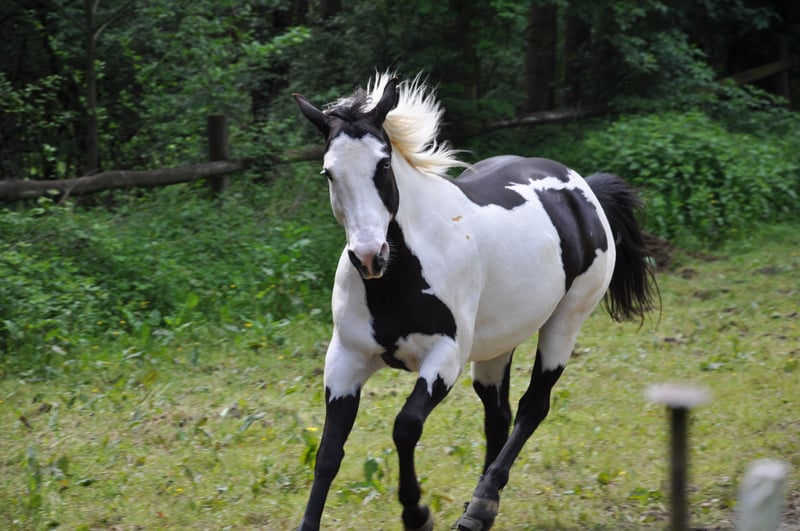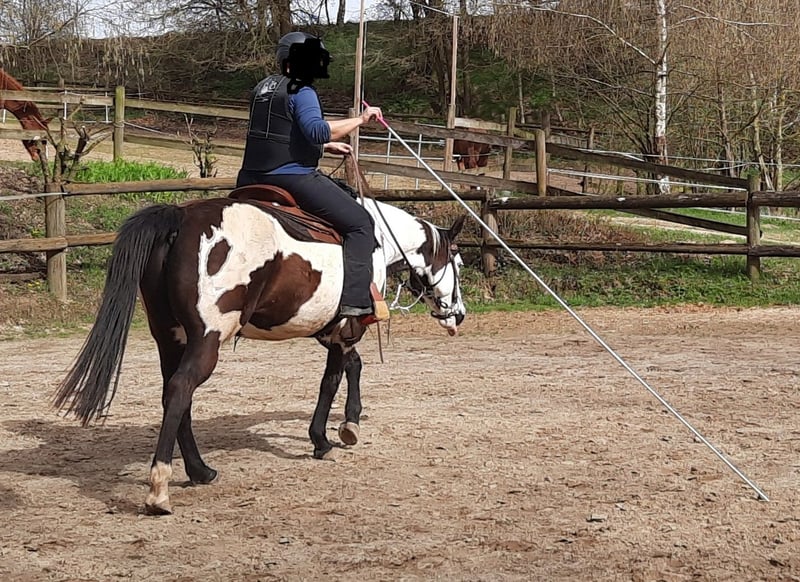 For sale is a 10-year-old, 148cm, barefoot, beautiful Paint mare with one blue eye. Well and very versatile ridden and trained: arena, trail, Garrocha, extreme trail - no problem for her. Additionally, she is fit in liberty work, round pen, knows some circus tricks, and has also participated in fire riding. Planning, noise bags, flapping gates - everything is top-notch. In handling, she is absolutely great, calm with the farrier (she just dozes off), loading is no problem, as is driving. She has no issues in unfamiliar environments. Loves water, enjoys swimming in rivers and lakes. She is familiar with trucks, cars, tractors with and without trailers, bicycles, motorcycles, highways, trains, and much more. The mare lives in a paddock, which is the best for her. In top shape, also suitable for long trail rides. She is PSSM1 positive, absolutely asymptomatic, has never had any issues. I only discovered this by chance some time after the purchase. Not a horse for beginners or children! She knows what she wants and also what she does not want, and she shows it. She occasionally tests the rider (not daily, but about every two weeks), and one must assert oneself. Then it works. Unfortunately, this is not suitable for me; I cannot cope with it in the long run. Very unfortunate, as she is a top horse. All equipment can be purchased separately: saddle, bridle, blankets, hoof boots, lungeing girth, etc. The horse can be delivered if not too far away. Please inquire only by email with your contact details - thank you.
