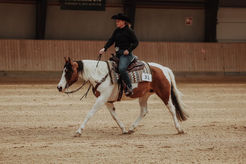 APHA, mare, 2015, 154 cm Color: Dun Tovero / Overo (Regular) with blue eye Sire: Dun Kicked it (by Dun It Gotta Gun, Hollywood Dun It) Dam: Shimmer from Belgium (by Smart She Goes) 6 panel N/N - OWLS, HYPP, PSSM1, MH, GBRED, HERDA Color test: N/N LWO Katie is not only beautiful, she is also a very lovable and sociable horse both towards people and animals. She has a calm temperament and is reliable in all handling, she enjoys and stands still when washing, clipping and grooming. She is very easy to load by one person and stands still during transport. She can be ridden by anyone, whether you are a beginner or experienced, she will give you what you ask for. She is super cool and stable both in the stable, the arena and in the terrain and even traffic-safe, she can be ridden alone and with others. She has solid show experience and has already shown that she is an All-Around horse with talent especially for all ranch disciplines. She is very good at Showmanship and generally a really good pattern horse. She is completely up to date with vaccination, farrier, teeth, worming and chiropractic etc. She has never been injured. She has a foal in 2023 Here are some of her achievements: APHA Amateur ROM Showmanship APHA Amateur Walk-Trot Zone 12 Champion (World Show qualifier) APHA Amateur Halter Reserve Champion Mare Gold medal PHCDK Danish Championship Silver medal PHCDK Danish Championship Bronze medal PHCDK Danish Championship PHCDK Highpoint Novice Amateur Performance Honor Award – 1. Pl. Danish Animal Exhibition Money earner in ranch classes All-Around Champion - Open Located in South Denmark (1½ hour from German boarder)