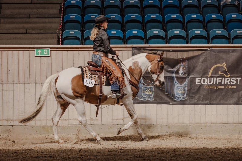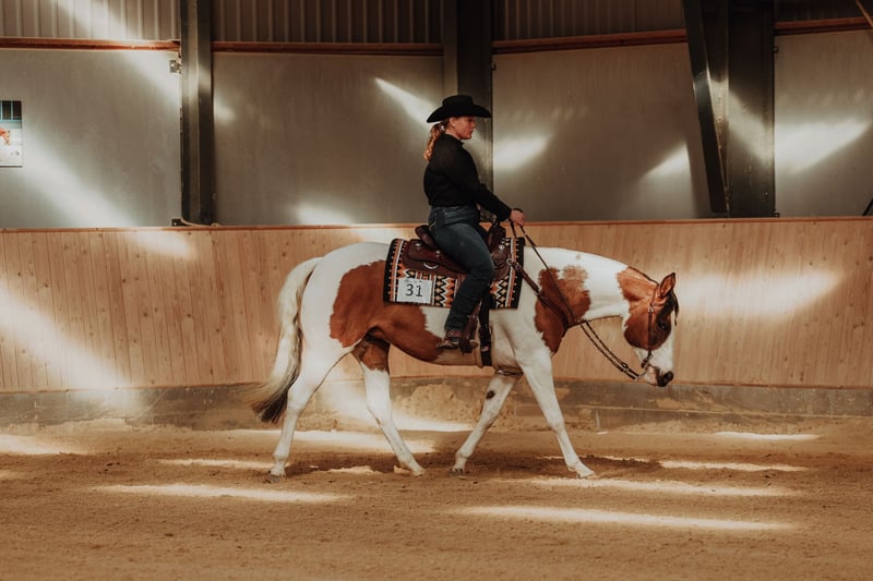 APHA, Stute, 2015, 154 cm Farbe: Dun Tovero / Overo (Regular) mit blauen Augen Vater: Dun Kicked it (von Dun It Gotta Gun, Hollywood Dun It) Mutter: Shimmer from Belgium (von Smart She Goes) 6-Panel N/N - OWLS, HYPP, PSSM1, MH, GBRED, HERDA Farbtest: N/N LWO Katie ist nicht nur schön, sie ist auch ein sehr liebenswertes und geselliges Pferd, sowohl gegenüber Menschen als auch Tieren. Sie hat ein ruhiges Temperament und ist in allen Handlungen zuverlässig, sie genießt es und steht still beim Waschen, Scheren und Putzen. Sie lässt sich von einer Person sehr leicht verladen und steht während des Transports ruhig. Sie kann von jedem geritten werden, egal ob Anfänger oder erfahren, sie wird dir geben, was du verlangst. Sie ist super cool und stabil sowohl im Stall, in der Arena als auch im Gelände und sogar verkehrssicher, sie kann alleine und mit anderen geritten werden. Sie hat solide Turniererfahrung und hat bereits bewiesen, dass sie ein All-Around-Pferd ist, mit Talent besonders für alle Ranch-Disziplinen. Sie ist sehr gut in Showmanship und generell ein wirklich gutes Musterpferd. Sie ist vollständig auf dem neuesten Stand bezüglich Impfungen, Hufschmied, Zähne, Entwurmung und Chiropraktik usw. Sie hat sich nie verletzt. Sie hat 2023 ein Fohlen. Hier sind einige ihrer Erfolge: APHA Amateur ROM Showmanship APHA Amateur Walk-Trot Zone 12 Champion (Weltmeisterschaftsqualifikation) APHA Amateur Halter Reserve Champion Stute Goldmedaille PHCDK Dänische Meisterschaft Silbermedaille PHCDK Dänische Meisterschaft Bronzemedaille PHCDK Dänische Meisterschaft PHCDK Highpoint Novice Amateur Performance Ehrenauszeichnung – 1. Platz Dänische Tierausstellung Geldverdienerin in Ranch-Klassen All-Around Champion - Open Standort: Süddänemark (1½ Stunde von der deutschen Grenze)