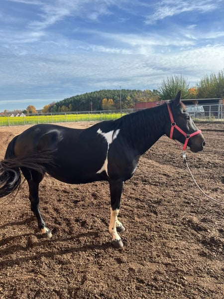 Im Auftrag für eine liebe Freundin suchen wir den Herzensmenschen "PALU" ist eine außergewöhnliche Murgesen/Paint-Mix Stute. 11 Jahre, ca. 1,60 m Stockmaß – fein geritten, ehrlich. Ein Pferd mit Ausstrahlung, Energie und Tiefe. Sie bringt Go mit und liebt es, regelmäßig gearbeitet zu werden. Palu möchte mitgenommen werden – geistig wie körperlich. Kein Pferd für Anfänger, sondern für einen Menschen mit Gefühl, Klarheit und Freude an feiner Arbeit. ✨ Was Palu ausmacht: • sehr gut & fein ausgebildet • solide Horsemanship-Basis • im Umgang ein absoluter Schatz • im Gelände unerschrocken, alleine wie in der Gruppe • klar im Kopf, sensibel im Körper • ehrlich, leistungsbereit, präsent 🧬 Gesund & transparent: • PSSM-Trägerin – gut bekannt & leicht zu managen • aktuelle Röntgenbilder ohne größere Befunde • beschlagen • Haltung: Box nachts / Koppel tagsüber 💔 Abgabegrund: Ausschließlich wegen Familienzuwachs – nicht aus Not, sondern aus Verantwortung. Palu wird nur in allerbeste Hände abgegeben. Das ist nicht verhandelbar. 📍 Standort: Mitteleschenbach (PLZ 91734) 🎥 Videos vorhanden 📲 Bitte nur ernstgemeinte Anfragen per WhatsApp 017627580948 ________________________________________ 💭 Manche Pferde suchen keinen Besitzer. Sie suchen einen Menschen, der sie wirklich sieht. Wenn Du das Gefühl hast, Palu könnte Dein Herzpferd sein – dann melde Dich. Alles andere fügt sich. www.blankhofbacktotheroots.de