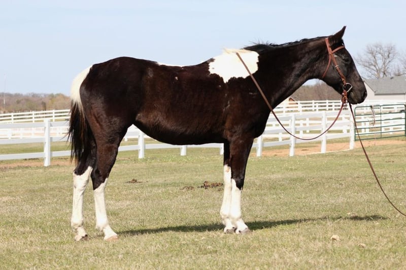 "AVAILABLE ON ONLINE HORSE AUCTION AT www DOT MagicHorseAuction DOT com BIDDING OPEN NOW thru TUESDAY | MARCH 31st! BUY IT NOW AVAILABLE! *Final price will be determined on auction site* CONSIGNOR CONTACT INFO:Trysten Park #630-659-7397 LOCATION:Fairview, Tx" "★★ ABIGALE ★★ 12-Year-Old Paint Mare | 4 Stockings • Absolutely Gorgeous • Seasoned Trail Horse with Personality Abigale is a stunning 12-year-old paint mare with four eye-catching stockings and a look that turns heads everywhere she goes. With her beautiful coloring, strong build, and bigger-than-life personality, she’s the kind of horse that stands out in every way. She absolutely loves having a job and thrives when she’s being ridden and worked. Abigale has a great motor, a forward mindset, and the kind of stamina that allows her to go all day while still enjoying every minute of it. She has been used extensively on the trail and has proven herself to be reliable in a wide variety of environments. Whether riding out alone or in a group, she is confident, steady, and surefooted. She has been ridden straight through downtown without hesitation and is unfazed by traffic, bikes, strollers, dogs, pedestrians, and busy surroundings. In the arena, Abigale knows her leads, stops off voice cues, performs a smooth rollback into the rail, and carries a comfortable, slow jog. She has also been lightly started on collection and frame, showing her versatility and willingness to continue progressing in any direction. Abigale has been exposed to a wide range of obstacles and situations. She has carried a flag, confidently crossed tarps, gone over bridges, and even been swimming. Her bold and curious nature makes her enjoyable to ride in new places, and she handles unfamiliar situations with confidence. She has tracked cattle, been used in sorting, and has had a rope thrown off of her. She has also been part of ranch work, checking fences and dragging calves to the fire, showing she is capable and dependable when there’s a job to be done. On the ground, Abigale is just as enjoyable. She is easy to catch, enjoys baths, and genuinely likes attention. She has a fun, affectionate personality and gets along well with other horses. She is a straightforward, no-nonsense mare you can saddle up and go without needing any prep. Abigale is a unique mare with the looks, experience, and personality to make her an incredible partner. If you’re looking for a seasoned, versatile, and eye-catching horse that is ready to go enjoy, she’s the one. Feel free to reach out with any questions or to schedule a time to come meet this beautiful mare. Her video is available — don’t miss the chance to see her in action."