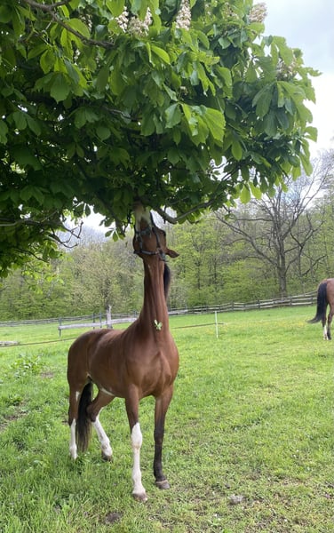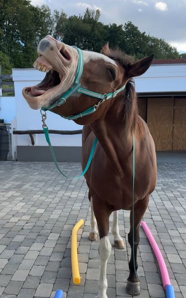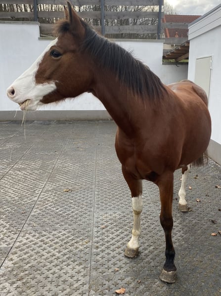 Bitte erst alles (!) lesen und nur wenn wirklich alles passt, sehr gerne melden! Wenn wirklich alles passt, gebe ich meine Paint Stute (o.P.) in allerbeste Hände und artgerechte Haltung ab. Sie ist 13 Jahre alt, ca. 1,60m und ein ganz besonderes Pferd. Sie ist ein absolut rangniedriges und soziales Pferd, das so gerne einen Kumpel zur Fellpflege haben möchte. Gegenüber dem Menschen ist sie allerdings oft ein echtes „grumpy horse“ mit Nähe-Distanz-Problem. Daher nur in erfahrene und konsequente Hand, nicht für Kinder – und auf gar keinen Fall an Personen, die sie mit Druck und Macht „überzeugen“ wollen. Auf Druck reagiert sie mit gesteigerten grumpy-Attacken. Da sich ihr Verhalten bei Boxenhaltung verschlechtert, gebe ich sie nur… -> in Offenstallhaltung, -> mit fairen Artgenossen/Pferdegesellschaft, -> ausreichend Liege- Unterstell und Rückzugsmöglichkeiten und -> 24/7 Zugang zu Heu. Ich wünsche mir ein „für-immer-zu-Hause“ - Sie soll kein Wanderpokal werden! Sie hat einige Baustellen, daher hatte sie eine lange Pause und wird als bedingt reitbar verkauft. Rassetypisch ist sie weich gefesselt und positiv in der Beugeprobe. Anfang des Jahres machte ihr ein negativer Palmarwinkel / Hufbeinfehlstellung des Vorderfußes Probleme, der lange nicht diagnostiziert wurde. Durch die Fehlbelastung folgte eine beidseitige Sehenschneidenentzündung der Fesselbeugesehnen. Seit August läuft sie wieder lahmfrei. Mit Kunststoffbeschlag kommt sie nun gut zurecht, so dass sie seit ein paar Wochen wieder langsam im Gelände geritten wird. Sie wird kein 100% belastbares Reitpferd mehr werden können und ist auch nicht zur Zucht geeignet. Kein Gewichtsträger! Für Hallen-/Platzarbeit, reiten auf tiefem Boden oder mit vielen Wendungen oder auch fürs Longieren ist sie aufgrund der weichen Fesselung nicht (!) geeignet. Auf hartem Boden und geraden Strecken ist sie aber eine wunderbare Partnerin für gemütliche Geländeritte. Sie ist Western geritten. Im Gelände ist sie sicher und ein absolutes Verlasspferd: Ich reite sie immer gebisslos. Sie läuft alleine, auch auf völlig fremden Strecken, mit oder als Handpferd und war auch nach längeren Pausen immer brav und ist nicht schreckhaft. Insgesamt ist sie eher von der gemütlichen Sorte und eher etwas büffelig. Sie ist sehr klug und witzig. Sie kann einige Kunststückchen und wäre sicherlich von Zirkuslektionen und mehr zu begeistern. Spazieren gehen wir nur mit Halfter. Von Alltagsgeräuschen über Kettensägen bis zu Baustellenlärm – sie hat bisher nichts so schnell aus der Fassung gebracht. Beim Schmied und auch beim Tierarzt war sie immer brav. Ihre verhaltensoriginelle Seite hat sie sich bisher immer für uns aufgehoben ;)… Verladen? Für Futter tut sie fast alles ;)… Sie ist zwar länger nicht gefahren, aber ich habe regelmäßig Verladetraining mit ihr gemacht. regelmäßig geimpft, entwurmt und beim Schmied (4-fach Kunststoffbeschlag) Zähne zuletzt 2024 gemacht chiropraktische Vorstellung Anfang 2025 Es ist kein Notverkauf – ich suche für sie das perfekte „für-immer-zu-Hause“! Wenn du dir vorstellen kannst, meiner Paint Stute ein 5***** zu Hause zu geben und ihren Besonderheiten gerecht zu werden, freue ich mich über deine Nachricht -bitte mit vollständigem Namen und kurzer Vorstellung des künftigen zu Hauses :). Platz vor Preis! Komplettes Zubehör, inkl. eines passenden Westernsattels, kann miterworben werden.