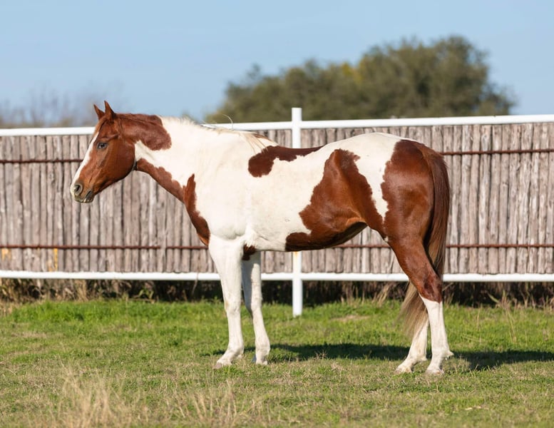 ONLINE AUCTION Place your bids at www.PlatinumEquineAuction.com Starting Bid $3500 Auction ends January 19th, 2025 Need a new saddle? Check out White Rock Saddles on our website or Facebook! Missy is the perfect sized 15H, 14 yr old sorrel and white paint mare. She has been THERE done THAT!! The majority of her life she’s been used a parade / drill team / flag horse and she’s even carried sparkling firecrackers! When not at an event, she was used as the beginner riders trail horse and she has seen COUNTLESS miles of trails! She is absolutely as gentle as one could be! Missy LOVES attention and has the sweetest NON marish personalities! She is very broke and rides like a good, honest one should!! She’ll neck rein and move off leg, short lope right off and stop right when you tell her to!! Missy has ZERO buck, bolt or rear and is not spooky at all! She would be the ideal horse for anyone looking for an unflappable trail horse or drill team/flag/parade horse! She is solid and SANE in every way and she’d be the perfect beginner horse or lesson horse too! If you can hold the reins, you can ride her! Missy is UTD on teeth, feet and coggins and ready to go to her new family! You’re absolutely sure to love this girl, she quickly became a barn favorite here!!! More pics and videos on her website page at northtexashorsecompany.com/missy. Please call Blair with North Texas Horse Company for more info at 817-757-3046. We are located in Weatherford, TX and can help arrange affordable shipping to anyone!! ONLINE AUCTION Place your bids at www.PlatinumEquineAuction.com Starting Bid $3500 Auction ends January 19th, 2025 Need a new saddle? Check out White Rock Saddles on our website or Facebook!