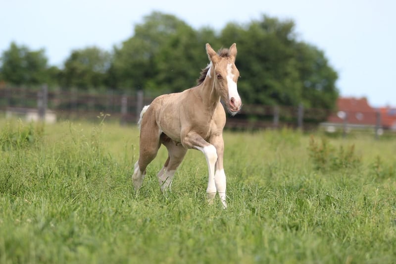 Onze Twinkle's Toskii is op zoek naar een toekomstig thuis. Onze kleine Toski is een Grullo Champagne tobiano en zou homozygoot kunnen zijn voor black, dun en tobiano. Ze groeit bij ons op in een liefdevolle kudde, en we doen ons uiterste best om haar de best mogelijke start in het leven te geven. We letten al op goede voeding tijdens de dracht, zorgen voor veel beweging en verschillende ondergronden voor de veulens, zodat gewrichten, pezen, banden en botten zich goed ontwikkelen, regelmatige ontworming, hoefcontrole, enzovoort. Toski heeft een vriendelijke, open en nieuwsgierige karakter, een geweldig fundament en een goed exterieur, en beschikt over veel bewegingsvermogen. Ik ben er zeker van dat ze veel vreugde zal brengen. Toski kan in de herfst naar haar nieuwe thuis verhuizen, maar kan ook nog graag bij ons blijven voor de opfok. We kijken uit naar leuke aanvragen, ik zal de advertentie hier in de loop der tijd aanvullen. Vader en moeder kunnen ter plaatse worden bekeken. Op de foto's is ze enkele dagen oud. Locatie 85669 Pastetten.