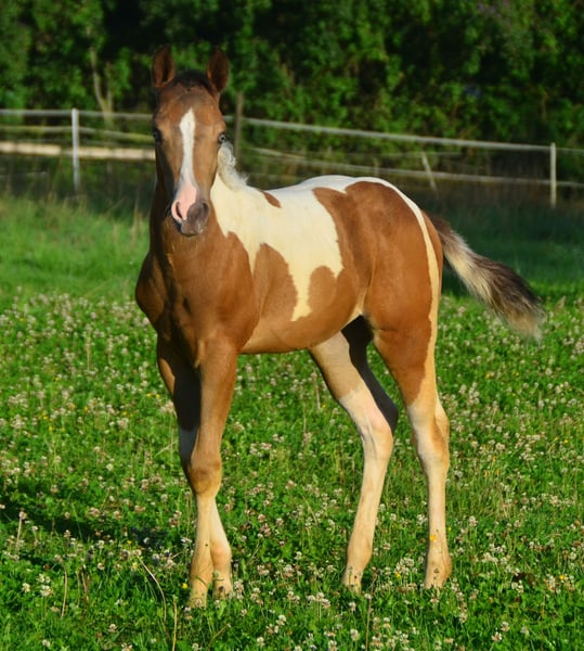 Miral è Amber Champagne, ha un movimento brillante e una natura molto dolce e gentile. È omozigote per il gene tobiano e produrrà solo puledri colorati. È una Paint Horse con carta completa e 7 pannelli N/N. Cresce qui in modo adeguato alla specie in un grande allevamento. Naturalmente sarà regolarmente sverminata e vaccinata, con documenti e passaporto.