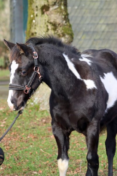 GEENA ENOLA BUENO Black Overo APHA Stute Geboren: 28.05.2025 Endgrösse: ca 153 cm 6 panel n/n Ee aa n/LWO Kein Schimmel Träger