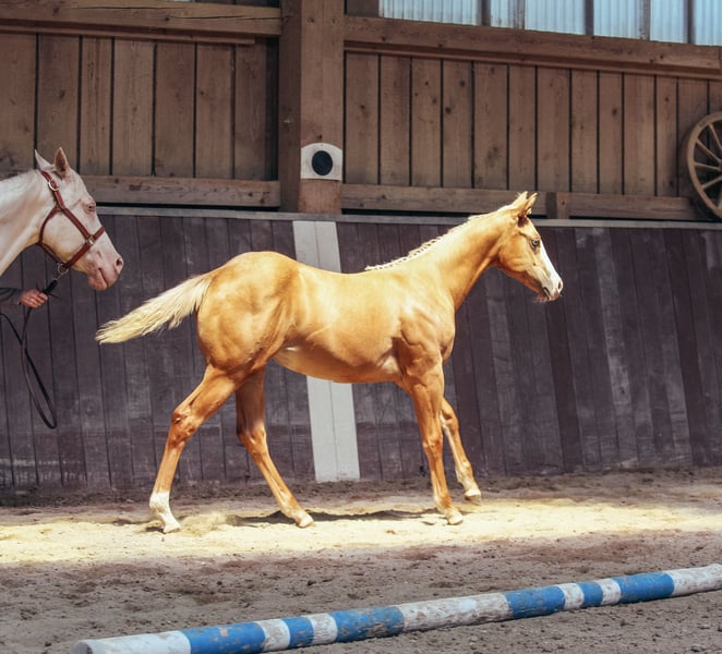 ✅ Kent het veulenen-ABC ✅ Gedraagt zich goed bij de smid ✅ Laat zich probleemloos wassen ✅ Verladingsvaardig ✅ Toont zich in de dagelijkse omgang rustig en attent De beste bloedlijnen voor reining en ranch, Heidi's evenwichtige conformatie en haar aangename karakter vormen uitstekende voorwaarden voor een veelzijdige toekomst. Haar vlakke, elastische bewegingen en haar "will to please" wijzen op een veelbelovende toekomst – of het nu in de westernsport is of als betrouwbare vrijetijdspartner. 🤎 🏆 Tijdens de PHCG veulenschouw in Stoßberg behaalde Heidi de 3e plaats bij de merrieveulens met een totaalcijfer van 7,6 en werd uitgeroepen tot PHCG Premium Veulen.
