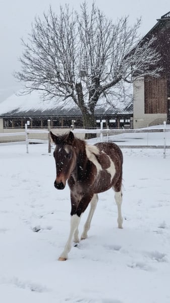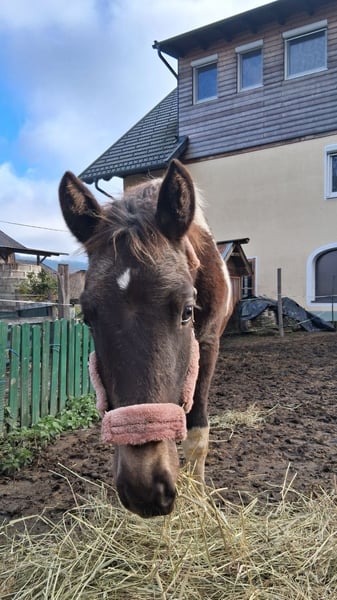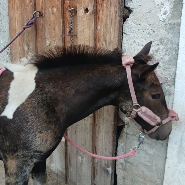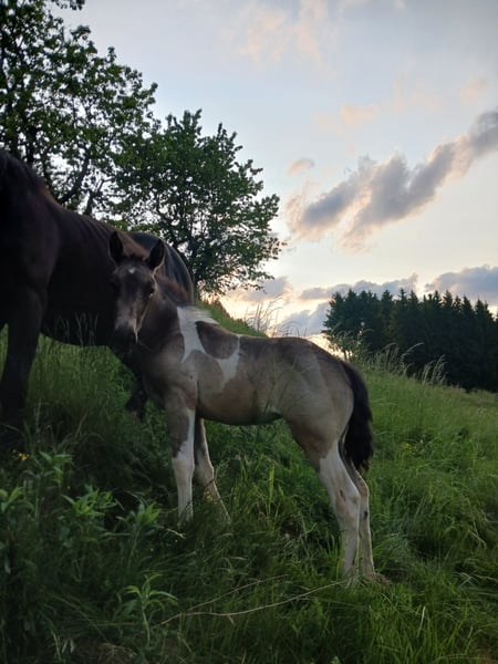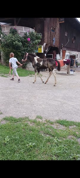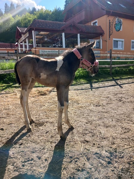 Vater: American Paint Horse "Magic on Ice" Mutter: Noriker (2a) Geb.: April 2025 Lenny kennt das Fohlen ABC. Angebunden sein, Hänger fahren, Hufe geben, Geputzt und geduscht werden und ist dem Alter entsprechend Halfterführig. Sie ist eine eher ruhige, sehr selbstbewusste junge Stute in der Sonderfarbe "Smokey Black Tobiano". Bei Übersiedlung ins neue Zuhause geimpft, entwurmt und natürlich gechippt. Zuchtpapiere könnten bei Bedarf angefordert werden. Stockmaß der Elterntiere: Hengst: 155cm Stute: 162cm Videos auf Anfrage Abgabe ab sofort Preis verhandelbar Keine Zustellung möglich