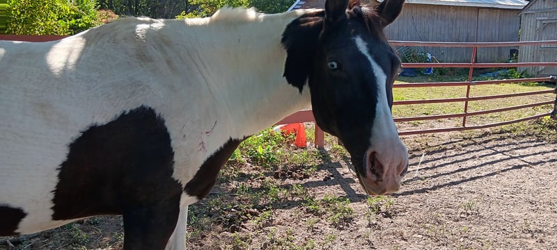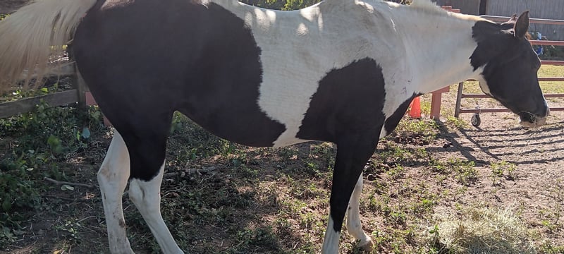 She has been a pet and an extremely easy keeper. She survives beautifully on hay, pasture, forage, no feed necessary. She has basic training. I ride her around neighborhood and pasture. Extremely docile. She still can be bred and is a good dam. Her barn name is Baby. Attached document is from the day I bought her. I did not transfer registration.