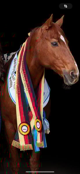 Olana is a 23-year-old mare, although she feels more like she just turned 10 ;) I got Olana 11 years ago when I was 11 years old myself. Since then, she has taken me from my first competition to several finals at the German Championships. In addition to training, she has always enjoyed being out on the trails and is practically "bombproof" there. In 2019, she competed in her last German Championship, and in 2020, she unfortunately had an ankle joint inflammation. This has completely healed and no longer causes any problems. After that, I took her out of sports; since then, she is mostly ridden 2-3 times a week and goes out on trails 2-3 times as well. In cold temperatures, she needs about 20 minutes of walking before she loosens up, and in heat, she is less eager to work - although she always enjoys going into the woods ;) Since I have had her, she has had "dental issues," which are well managed with a dental cleaning every six months. Her Cushing's value should also be monitored; so far, she does not need any medication. A few years ago, we also discovered a mild hoof roll, but she shows no signs of discomfort as long as her hooves are kept as they have been in recent years. Olana has always been an absolute support and stands by her person through thick and thin. Unfortunately, I now have to part with her for personal reasons. I will only let her go to an absolute best home: - No weight carriers - Plenty of pasture, preferably a box at night and hay 24/7 - Although Olana is still very fit, I wish for someone who will keep her engaged even after her riding time and be there for her - Olana finds it difficult to connect with many people; 1-2 close persons would be great for her - Olana loves children and teenagers and is particularly patient with them - just like with insecure riders; as long as one is fair to her, she does not need a secure rider A suitable saddle can be purchased additionally. Home before price! Since Olana is my soul horse, it is incredibly important to me where she goes. If you think Olana would be a good fit for you, feel free to write to me :)