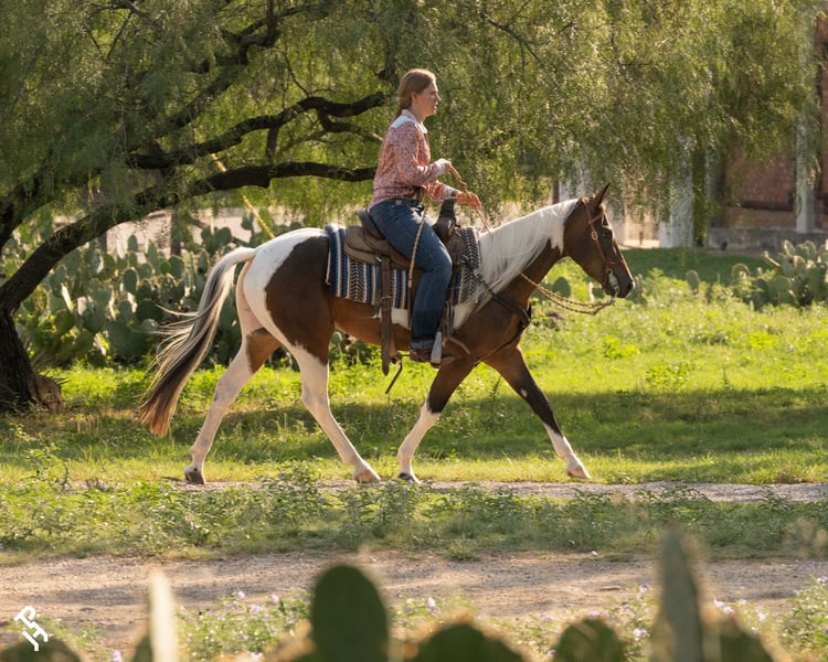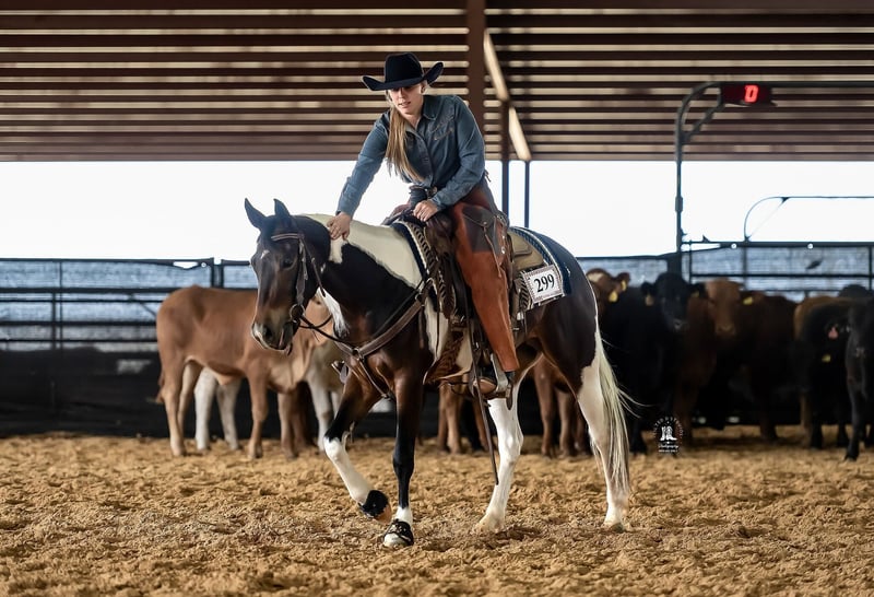 This stunning paint mare has been shown in NRCHA events (Reining, Cutting, Fence Work) and she improves each time she steps into the show pen. I have swung a rope on her and started to practice trail obstacles. She is confident in and out of the arena, and was a stellar model for the APHA's Chrome magazine. She handled the human and vehicle traffic in the Fort Worth Stockyards like a seasoned older horse. Will continue to be shown, and price will go up with earnings.