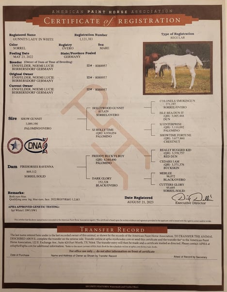 Zum Verkauf steht meine selbstgezogene Paint Horse Stute Gunnits Lady In White, geboren 2022, ca. 1,50 m groß, mit seltener maximal-white Zeichnung und besonderer Ausstrahlung. Lady ist bei uns geboren und liebevoll aufgewachsen und überzeugt durch ein harmonisches Gebäude, korrekte Fundamentqualität sowie einen sehr ausgeglichenen, menschenbezogenen Charakter. Sie ist sozial, unkompliziert im Umgang und sowohl Offenstall- als auch Boxenhaltung gewohnt. Seit Sommer 2025 wird sie schonend ausgebildet und zeigt sich dabei sehr lernwillig, rittig und aufmerksam. Sie geht brav alleine sowie in der Gruppe ins Gelände und konnte bereits auswärts Erfahrung sammeln – unter anderem auf der Partner Pferd 2026, wo sie sich in neuer Umgebung und großer Atmosphäre absolut gelassen präsentierte Sie ist barhuf, regelmäßig beim Schmied, zahntechnisch sowie osteopathisch betreut und lässt sich problemlos verladen und fahren. Eine vielversprechende junge Stute mit toller Arbeitseinstellung und Perspektive für Freizeit, Turniersport oder aufgrund ihrer besonderen Farbe auch für die spätere Zucht interessant. Weitere Informationen, Bilder und Videos gerne bei ernsthaftem Interesse. Besichtigung nach Terminvereinbarung möglich.