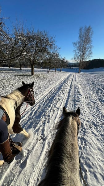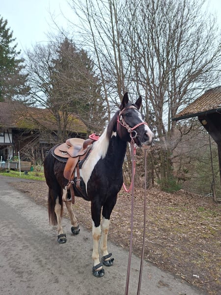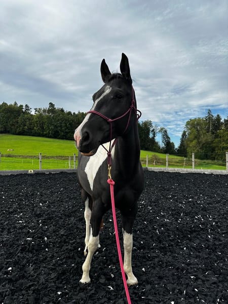 Mit schwerem Herzen suche ich für meine bald 4-jährige Paint Horse Stute „DancingMSHollywood“ (Holly) ein liebevolles neues Fünf-⭐️-Zuhause. 🌿 Wie ihr Name schon verrät, ist Holly eine junge Stute mit viel Ausdruck, Charme und Persönlichkeit. Ihr freundliches Wesen und ihre Intelligenz stechen sofort ins Auge. Ich habe Holly selbst gezogen – aus meiner Stute Steppin Miss Colonel und dem tollen Hengst Dancing Boys Okie. Mit ihrer wunderschönen Zeichnung ist sie nicht nur optisch ein echter Blickfang, sondern überzeugt auch durch ihr liebevolles, neugieriges Wesen. ✨ Über Holly: - bald 4 Jahre jung, angeritten und lernt täglich Neues dazu - neugierig, menschenbezogen und sehr verschmust (manchmal vergisst sie dabei, wie gross sie schon ist 😉) - kennt Kinder, Hunde, Katzen und den Alltag auf dem Bauernhof - steht aktuell in einer kleinen Offenstallgruppe mit 2 anderen Stuten - während des Beritts (bei Ben Fischer) war sie Boxenhaltung gewohnt - läuft barhuf, was bisher bestens funktioniert - braucht eine konsequente, aber sehr feine und liebevolle Hand, die ihr den Weg zeigt Holly schenkt ihr Herz ganz – wenn du sie einmal gewonnen hast, hast du eine treue Gefährtin fürs Leben. 🩵 Sie liebt Nähe und Zuwendung, manchmal etwas stürmisch, aber immer ehrlich und voller Vertrauen. 📜 APHA-Papiere vorhanden 📍 Standort: Kanton Thurgau, Schweiz 💰 Preis: ca. CHF 10‘🥕🥕🥕 – Platz geht klar vor Preis! Für mich muss das Gesamtpaket stimmen – mir ist wichtig, dass Holly in Hände kommt, die sie mit Geduld, Liebe und Herz fördern. ❤️ Wenn dich Holly anspricht, melde dich gerne bei mir. Ich erzähle dir mehr über sie und sende dir bei Interesse auch weitere Bilder oder Videos.