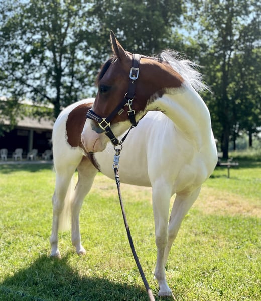 🦄 For Sale: Smart G Star Lizzy (2020) – Bay Tobiano APHA Mare 🦄 Are you looking for a gentle, sweet, and reliable horse? Lizzy is a kind and trustworthy mare searching for her new best friend! ✨ Why Lizzy is special: • Very calm and well-behaved during outdoor rides, farrier visits, veterinary checks, and grooming • Can be ridden with or without a bit/saddle • Suitable for children with basic experience and somewhat nervous riders, as well as adults • Active, eager to learn, and never does anything unexpected • Cutting trained, making her ideal as a recreational Western horse. Please note: Not suitable for intensive training or competitions involving stops, spins, or quick turns. 🐴 Practical: • Knows her herd outside 24/7; currently stabled • Regularly dewormed and vaccinated • 5-panel N/N tested by her owners • Possibly suitable as a children's pony • Trailer loading only • 13.5 hh (1.37 m) 💌 Lizzy deserves a loving home where she can be as happy as she is with me. Send a message and tell us how she would fit into your life!