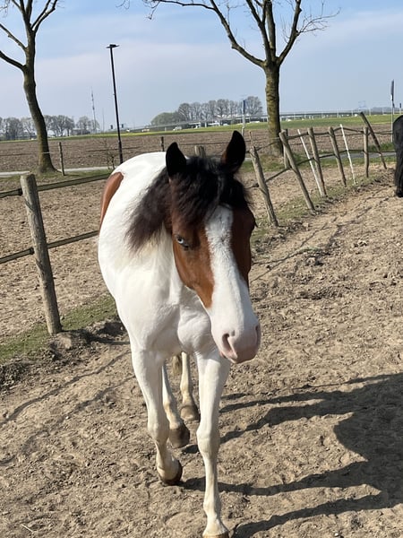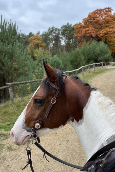 🦄 Te koop: Smart G Star Lizzy (2020) – Bay Tobiano APHA merrie 🦄 Op zoek naar een braaf, lief, betrouwbaar paard? Lizzy is een lieve en betrouwbare merrie die haar nieuwe beste maatje zoekt! ✨ Waarom Lizzy bijzonder is: • Zeer braaf bij buitenrijden, hoefsmid, dierenarts en wassen • Kan met of zonder bit/zadel gereden worden • Geschikt voor kinderen met basiservaring en iets onzekere ruiters alsook volwassenen • Actief, leergierig en doet nooit iets onverwachts • Cutting getraind, ideaal als recreatief western paard. Let op: Niet geschikt voor intensieve trainingen en wedstrijden met stops, spins en snelle wendingen. 🐴 Praktisch: • kent 24/7 buiten in kuddeverband staat hoger in rang. Staat nu in stalling. • Regelmatig ontwormd en geënt • 5-panel N/N door ouders • Mogelijk geschikt als kinderpony • Alleen trailer-laden • 1,37 m 💌 Lizzy verdient een liefdevol huis waar ze net zo gelukkig is als bij mij. Stuur een bericht en vertel hoe zij bij jullie past!