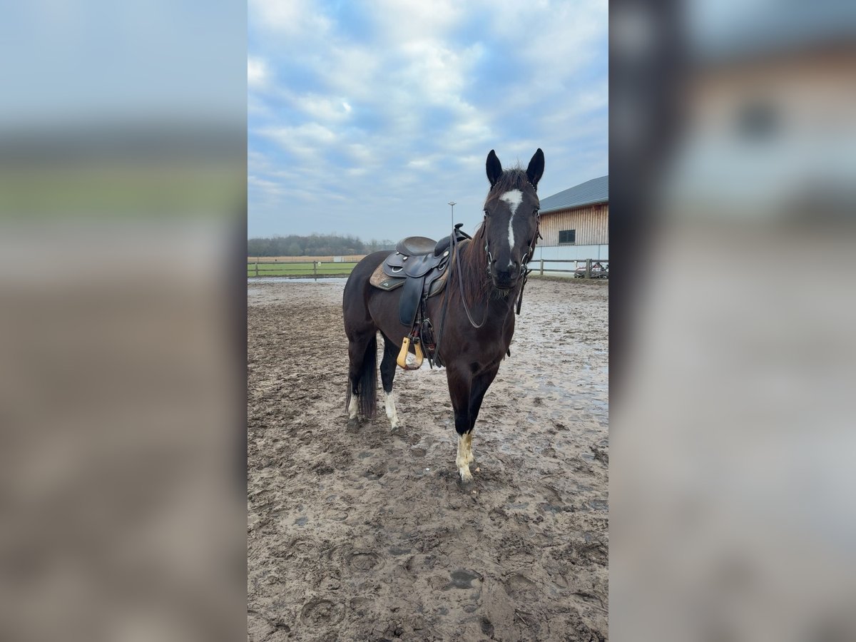 Met pijn in het hart moet ik mij wegens tijds- en financiële redenen helaas van mijn 5-jarige Painthorse merrie Malou scheiden. - 5 jaar oud en ongeveer 1,58 m hoog - Zippo/tiefdonkerbruine kleur met een witte vlek op de hals en manen, en vier witte benen - Gecertificeerd Painthorse veulen - Direct afstammeling van de Painthorse hengst Magic on Ice - Western getraind (zowel bitloos als met bit) - Heeft ervaring in het buitenritten maken; onder het zadel heeft ze al in alle gangen in het terrein gelopen, maar vanwege haar leeftijd heeft ze daar nog wat meer vertrouwen nodig - Foutstand (ze rolt met beide voorbenen van buiten naar binnen en heeft daarom hoefbeslag nodig; een speciaal hoeforthopedisch hoefbeslag is niet noodzakelijk) - Begonnen met vrijheidsdressuur - Bij mij verder opgeleid volgens het ProRode horsemanship-concept - Komt uit een Painthorse fokkerij uit Zwitserland Ik zoek iemand die Malou in haar vrije tijd wil rijden en werken. Ze staat momenteel in een kleine kudde in een paddock met uitloop. Accessoires kunnen tegen meerprijs worden meegegeven. Voor meer informatie, foto's/video's of een persoonlijk telefoongesprek, neem gerust contact op!