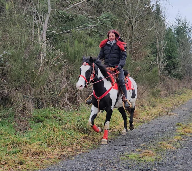 Kaila, klacz paint – łagodna, spokojna i wszechstronnie użyteczna Wiek: 5,5 lat Wysokość w kłębie: około 152 cm Cena: 7600 zł AKU: dostępne ✨ Opis: Ta pięknie umaszczona klacz paint zachwyca zrównoważonym usposobieniem i przyjaznym, miłym charakterem. W codziennym kontakcie jest posłuszna, chętna do współpracy i bezproblemowa. Pomimo młodego wieku, prezentuje się spokojnie, opanowanie i odporna na stres. Pod siodłem pracuje kooperatywnie, chętna do nauki i niezawodna. Cieszy się z jazdy, jest uważna i zapewnia pewne, relaksujące odczucia podczas jazdy. Szczególnie w rekreacji i jeździe westernowej jest wszechstronnie przydatna. 🐎 Idealna dla: Jeźdźców i jeźdźczyń, którzy poszukują niezawodnego, przyjaznego i łatwego w obsłudze partnera rekreacyjnego. Dzięki odpowiedniemu wzrostowi świetnie nadaje się także dla młodzieży lub mniejszych dorosłych. Idealna na rekreację, wycieczki i rajdy. 🩺 Nasze konie są regularnie: – odrobaczane – poddawane obróbce u kowala – kontrolowane osteopatycznie 🛍 Sklep na gospodarstwie: Westernowe siodła, uzdy i akcesoria 🚛 Transport i sprzęt na życzenie w atrakcyjnych cenach Nasza oferta: ✅ 3-miesięczna gwarancja wymiany ✅ Jazda próbna: 35 €, każde kolejne konie 25 € (odliczane przy zakupie tego samego dnia) ✅ 100 € natychmiastowego rabatu przy odbiorze/transporcie tego samego dnia ✅ Osobiste i szczere doradztwo 📞 Zapytania wyłącznie telefonicznie: 0171 – 4001968 🕗 Kontakt codziennie od 8 do 20 ⚠️ Brak kontaktu e-mailowego i WhatsApp ⚠️ Wszystkie informacje bez gwarancji