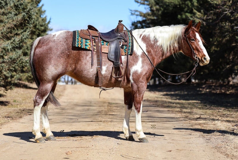 ⚜️𝓽𝓱𝓮 𝐆𝐎𝐋𝐃 𝓢𝓮𝓵𝓮𝓬𝓽⚜️ Happening now thru MONDAY | MARCH 23rd - Available EXCLUSIVELY on HorseBid's website! For more details and to register visit: www.Horsebid.com CONSIGNOR CONTACT: Gabriel Murphy 320-339-1458 LOCATION: Cannon Falls, MN BREED: APHA REGISTERED: Yes REGISTERED NAME: ME BE GOOD COLOR: Red roan TOBIANO/OVERO HEIGHT: 15.3 AGE: 6 GENDER: Mare Rose is a beautiful 2018 model, 15.3 hand APHA mare that truly is versatile. With her stocky build, kind eye, and willing attitude, Rose is the kind of mare that can fit into just about any program. She’s the perfect partner for long trail rides, confidently covering miles of country whether you’re riding through the woods, across open fields, or simply enjoying a quiet day in the saddle. Rose has also been used to check fences and handle everyday ranch tasks, proving she’s a dependable and practical horse to have around. Rose walks, trots, and canters nicely, neck reins, and has an easy, comfortable way of going. She rides around quiet and willing and is enjoyable for riders of many levels. On the ground, Rose is just as pleasant to be around. She is gentle, easy to handle, and not mareish at all, making her a pleasure in the barn or at the trailer. She stands tied quietly to be bathed, brushed, tacked up, and mounted without any fuss. Rose has gathered and pushed cattle and has the kind of solid foundation that allows her to go in many directions. Whether you’d like to continue using her for ranch work, enjoy her on the trails, or finish her your way in a western or English program, Rose is a versatile mare with a great mind and an even better attitude. 🐎