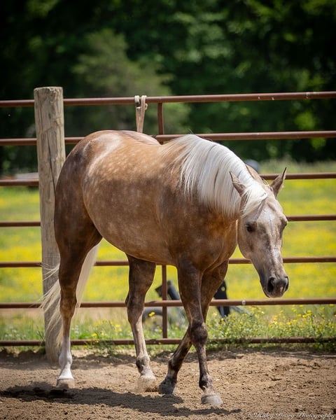⚔️ The HORSEMAN's Select ⚔️ Happening now thru MONDAY | JULY 28th - Available EXCLUSIVELY on HorseBid's website! For more details and to register visit: www.Horsebid.com CONSIGNOR CONTACT: Jamie Thomason 270-772-1706 LOCATION: Auburn, KY BREED: APHA REGISTERED: Yes REGISTERED NAME: CASHED N DIAMONDS COLOR: Palomino HEIGHT: 14 AGE: 8 GENDER: Mare Introducing CASHED N DIAMONDS, respectfully known as Harley! An 8 yr old, APHA, palomino mare, standing 14 hands. An own daughter of NRHA Million Dollar Sire, BIG CHEX TO CASH with LTE of $220,826 & Offspring Earnings of $1,342,000+. In the arena, out on the trail, heeling steers in the roping pen, or working on the ranch this pretty lady is not only there to get the job done, but to get it done with style! Harley has a beauty that is unmatched, paired with flawless conformation, and the training to be an asset in a variety of disciplines. Harley is soft in the face, travels both directions collected & on the correct lead. Moves laterally off leg pressure, has a smooth stop, and a nice turn around. On the trail, Harley rides alone or in a group, crosses water, downfall, and navigates rough terrain. She is no stranger to a days work. Has been taken out west to brandings, used to move cattle on the farm alongside working stock dogs, open & closes gates. She’s quiet in the roping box, scores well, has quick speed that would easily transition to breakaway or the barrel pattern. Truly a versatile horse! If you're searching for the perfect partner…..whether it's a horse for the arena, a standout in the roping pen, a fun trail companion to explore the great outdoors, or a mare with the pedigree, presence, and conformation ideal for a broodmare—Harley is your girl! With her versatile talent, proven bloodlines, and eye-catching looks, she checks all the boxes for riders and breeders alike. Don't miss the chance to add this exceptional mare to your barn! For any other question or if you would like to meet Harley in person before adding her to your family, feel free to reach out!