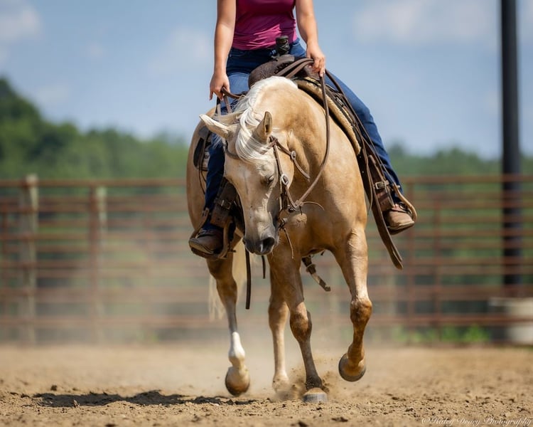 ⚜ The HERITAGE Classic ⚜ Happening now thru MONDAY | AUGUST 11th - Available EXCLUSIVELY on HorseBid's website! For more details and to register visit: www.Horsebid.com CONSIGNOR CONTACT: Jamie Thomason 270-772-1706 LOCATION: Auburn, KY BREED: APHA REGISTERED: Yes REGISTERED NAME: CASHED N DIAMONDS COLOR: Palomino HEIGHT: 14 AGE: 8 GENDER: Mare Introducing CASHED N DIAMONDS, respectfully known as Harley! An 8 yr old, APHA, palomino mare, standing 14 hands. An own daughter of NRHA Million Dollar Sire, BIG CHEX TO CASH with LTE of $220,826 & Offspring Earnings of $1,342,000+. In the arena, out on the trail, heeling steers in the roping pen, or working on the ranch this pretty lady is not only there to get the job done, but to get it done with style! Harley has a beauty that is unmatched, paired with flawless conformation, and the training to be an asset in a variety of disciplines. Harley is soft in the face, travels both directions collected & on the correct lead. Moves laterally off leg pressure, has a smooth stop, and a nice turn around. On the trail, Harley rides alone or in a group, crosses water, downfall, and navigates rough terrain. She is no stranger to a days work. Has been taken out west to brandings, used to move cattle on the farm alongside working stock dogs, open & closes gates. She’s quiet in the roping box, scores well, has quick speed that would easily transition to breakaway or the barrel pattern. Truly a versatile horse! If you're searching for the perfect partner…..whether it's a horse for the arena, a standout in the roping pen, a fun trail companion to explore the great outdoors, or a mare with the pedigree, presence, and conformation ideal for a broodmare—Harley is your girl! With her versatile talent, proven bloodlines, and eye-catching looks, she checks all the boxes for riders and breeders alike. Don't miss the chance to add this exceptional mare to your barn! For any other question or if you would like to meet Harley in person before adding her to your family, feel free to reach out!