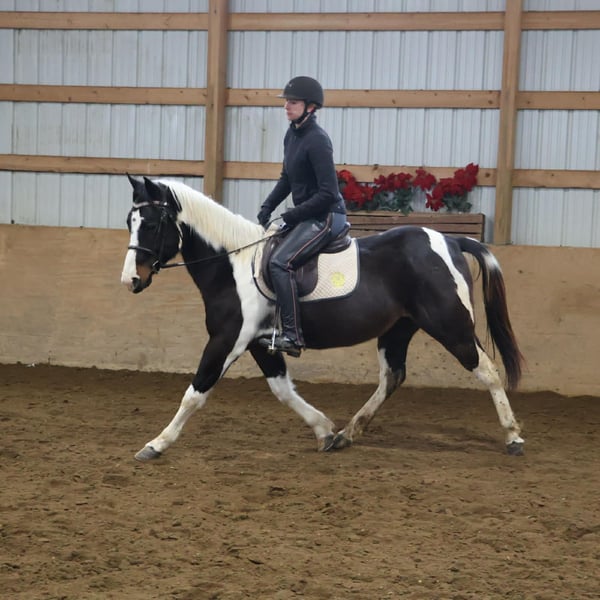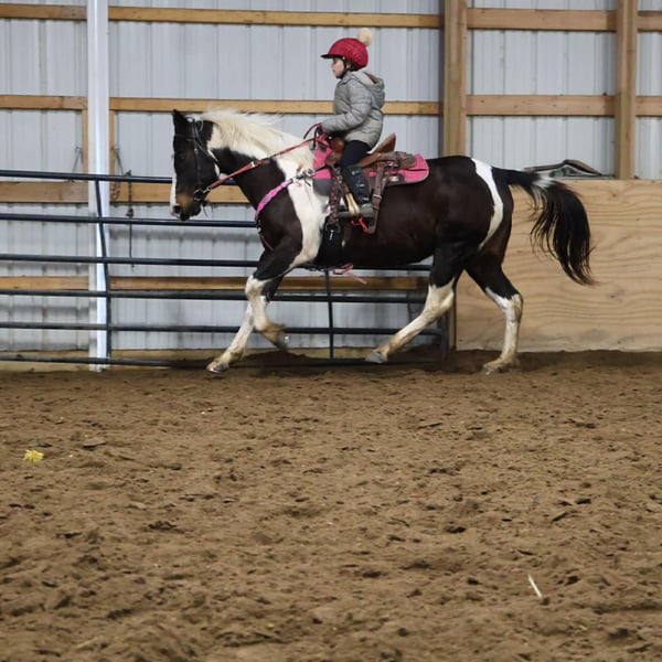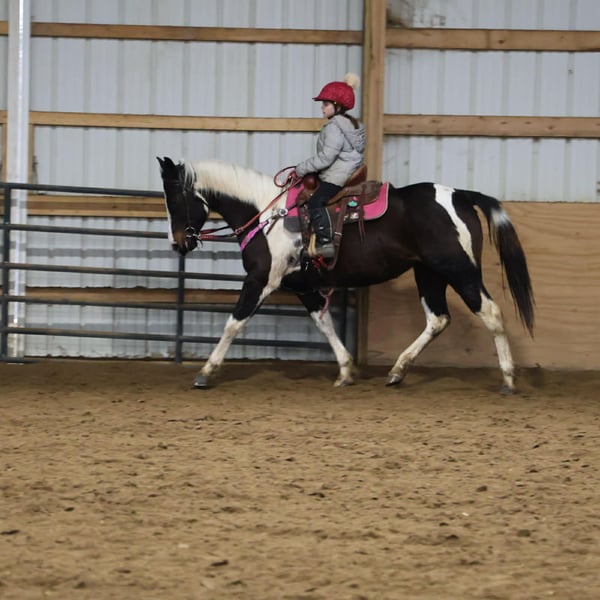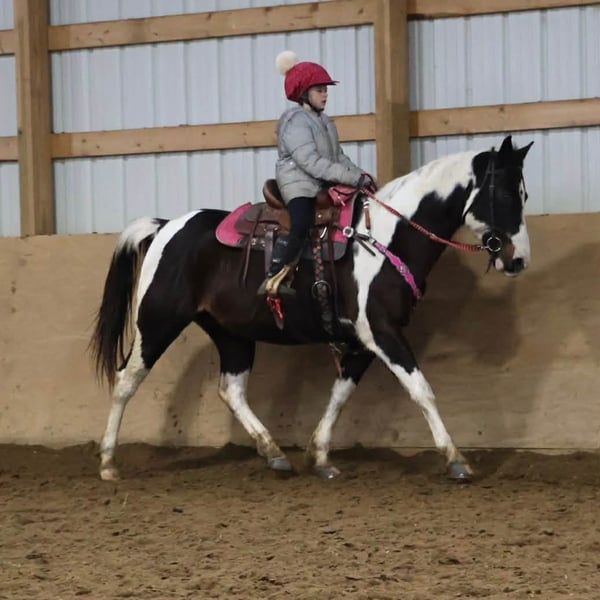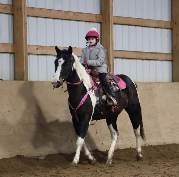 "AVAILABLE ON ONLINE HORSE AUCTION AT www DOT PlatinumEquineAuction DOT com BIDDING OPEN NOW thru SUNDAY | MARCH 22ND! *Final price will be determined on auction site* CONSIGNOR CONTACT INFO: Ellesse Schwartz 248-390-6831 LOCATION: Howell, MI We would like to introduce Sunshins Shastas Daisy or Sunshine as we call her at home. She is a registered 2018 (8 year old) APHA mare who stands a hair shy of 14.2hh. She is a beautifully put together tobiano. Sunshine has a delightful demeanor as she is a kind and loving horse who has been trained with all the bells and whistle's. Sunshine walk, trot, canters and knows her leads. Her transitions are effortless both upward and down. She both neck and direct reins. Sunshine has been used in 4/H and equestrian team and has competed in everything from trail to jumping to flags and poles. She is the type of horse who will teach you. She is easy to catch, load, haul, groom and tack. The most timid kiddos can do everything with her. Sunshine is happy to putz down a trail on a long rein and is not reactive of anything. She's also happy to jump around courses with beautiful flying changes. She is extremely versatile in her training and her ability. Kids as young as 6 and adults as old as 75 can ride and enjoy her and she will adjust to her rider. Sunshine has completed our full desensitization program and passed with flying colors. She even knows how to lay down on command! She's been trail ridden in the mountains of KY and the deep woods of Michigan. If you're looking for a true all around horse with stunning color, a good pedigree and loads of real world experience Sunshine is your girl! She lives in Howell MI 48855! Enjoy the video as we showcase several riders with a multitude of abilities. Call Ellesse 248-390-6831 for more information