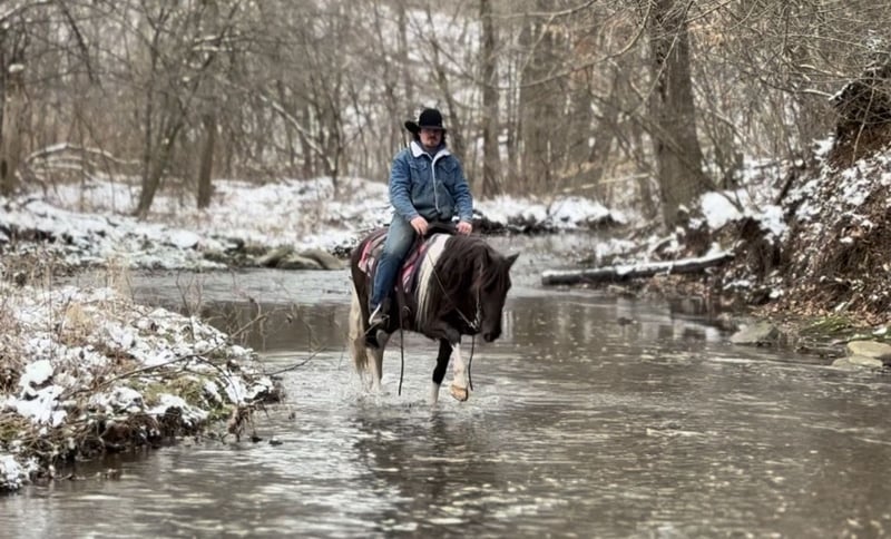 "AVAILABLE ON ONLINE HORSE AUCTION AT www DOT MagicHorseAuction DOT com BIDDING OPEN NOW thru TUESDAY | APRIL 28TH! BUY IT NOW AVAILABLE! *Final price will be determined on auction site* CONSIGNOR CONTACT INFO: McKenzie Cramer #330-307-0323 LOCATION: NORTH BLOOMFIELD, OH" Holly Mae is a beautiful paint mare standing 14.2 hands tall and 8 years old. This is an exceptionally nice, seasoned mare that knows her job and does it well. Holly Mae has been used as an everyday trail horse through the hills of eastern Kentucky, West Virginia, and Ohio— She confidently handles steep, rough, rocky terrain, big creeks, and deep hollows like its second nature. This little mare will go anywhere you point her, keeping up with the big horses and often making it look easier than they do. She genuinely enjoys her job and is the kind you can climb on, head out, and just relax. Holly Mae is the type that lets you sit back and enjoy the ride—the way it’s supposed to be. She’s been exposed to all aspects of farm life including machinery, traffic, and other animals, and takes it all in stride. She is an easy keeper, stands well for the vet and farrier, and is as low-maintenance as they come. Whether you’re looking for a dependable trail partner to log miles this summer or just a good-minded mare to enjoy, Holly Mae is ready to go to work for her next rider.