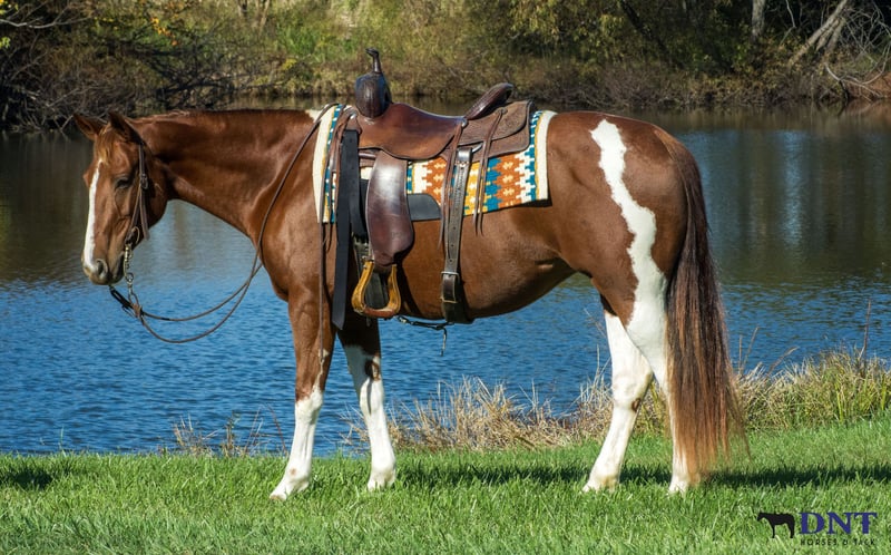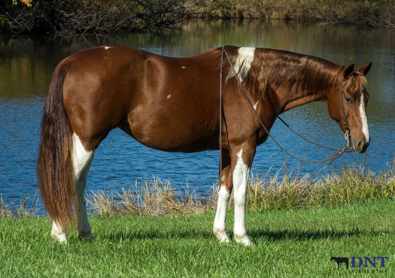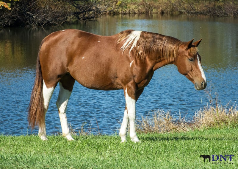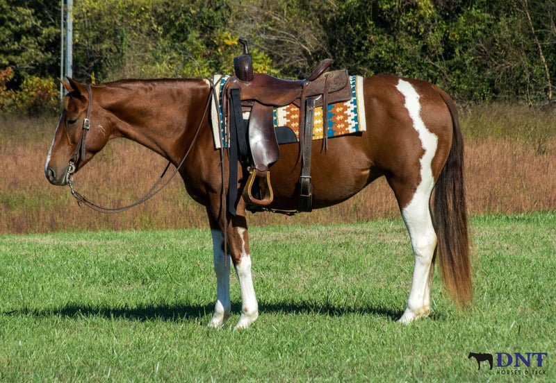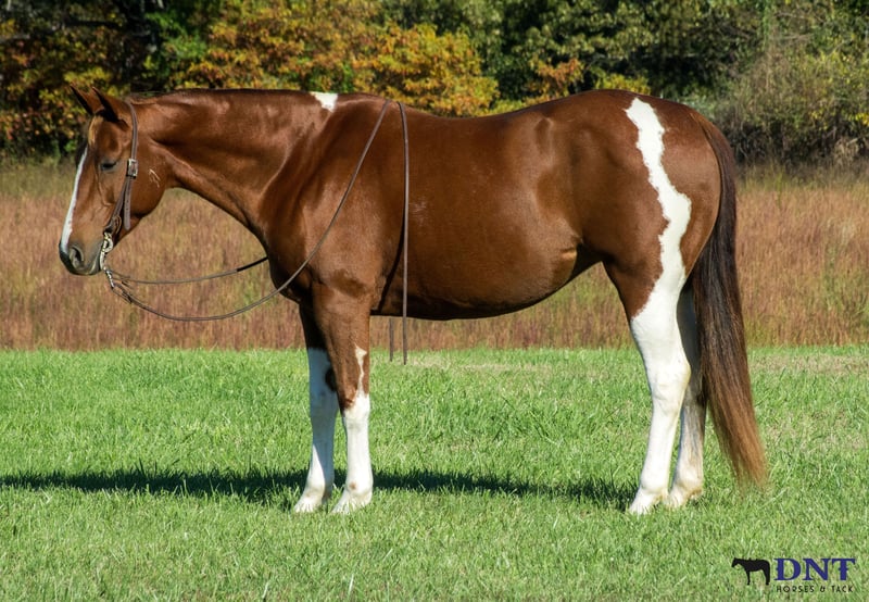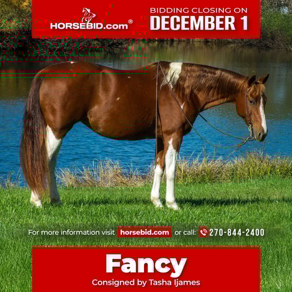 ⚜️ 𝓽𝓱𝓮 𝐇𝐨𝐫𝐬𝐞𝐦𝐚𝐧'𝐬 𝓢𝓱𝓸𝔀𝓬𝓪𝓼𝓮⚜️ Happening now thru MONDAY | DECEMBER 1st - Available EXCLUSIVELY on HorseBid's website! For more details and to register visit: www.Horsebid.com CONSIGNOR CONTACT: Tasha Ijames 270-844-2400 LOCATION: Henderson KY BREED: APHA REGISTERED: Yes REGISTERED NAME: Delta Olenas Shine COLOR: Chestnut and White Paint HEIGHT: 14.3 AGE: 7 GENDER: Mare Fancy APHA 2018 Delta Olenas Shine Fancy is a gorgeous 7 year old chestnut tobiano paint mare. Along with her cuteness, she is the perfect height standing at 14.3 hands tall and all the shape you could want. Fancy isn't just an eye catcher she is very well bred and goes back to the great cutting horse Doc O’Lena and is out of an own daughter of Shining Spark. She is very well broke and rides like one should. She will W/T/L, side pass and works off leg pressure. Fancy is absolutely broke for any level rider. She’s honest, gentle and safe. Fancy will walk all day if asked. She has a nice trot to her and transitions to a nice smooth lope. She neck reins with one hand, responsive to leg cues, backs and has a big stop when asked. You can ride her bareback with a halter or grass string if you want. Fancy will meet you at the gate wanting all the attention. She is out standing on the trails and has been trail ridden extensively through many different types of terrain. She is sure footed and honest. Fancy is not spooky and will cross creeks, go through any body type of water, thick brush, logs, bridges, rough terrain, up and down cliffs with ease. She has been rode on the road and is used to all kinds of traffic, heavy machinery and ATV’s. She is also dog safe. You can ride Fancy out alone with ease or with other horses. Fancy has also been used to sort and pen cattle at shows as well on the ranch. She will stand still for you to get on her from the ground or a mounting block. She stands to be groomed, fly spray, stands still to be saddled, takes the bridle with ease, bathes good, loads like a dream, clips great, and stands for the farrier. If you’re looking for that perfect horse for the family, please be sure to check her out. She’s looking for her forever home to please the whole family. We invite anyone and everyone to come meet and ride Fancy at our barn in Henderson, Kentucky. We are happy to assist with transportation arrangements. PPE are welcomed at buyers expense. For any questions about Fancy please contact Tasha 270-844-2400
