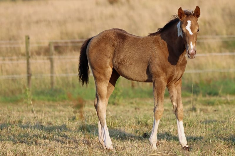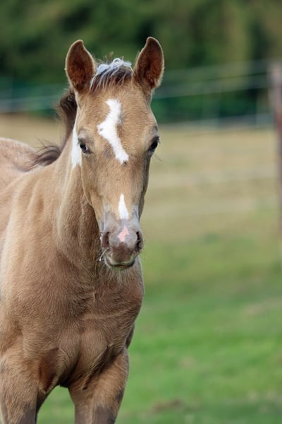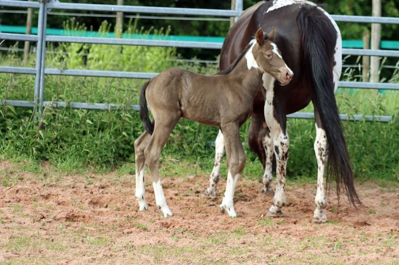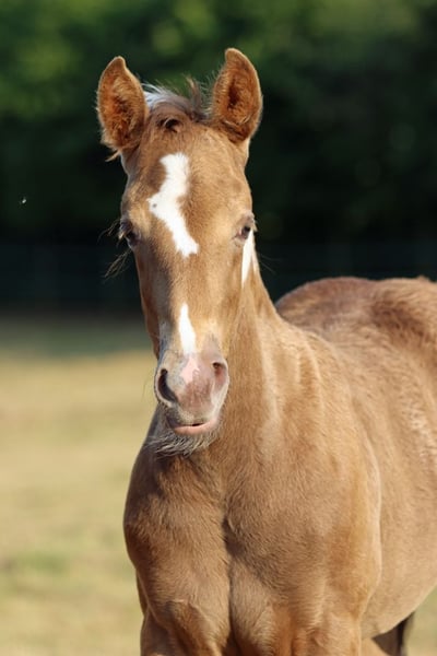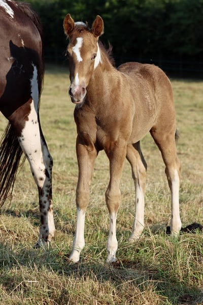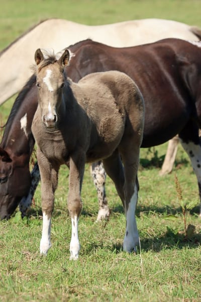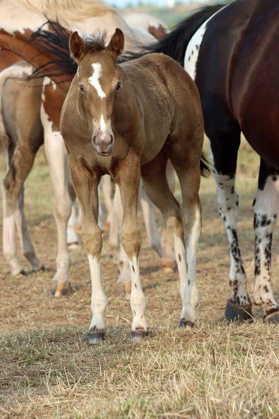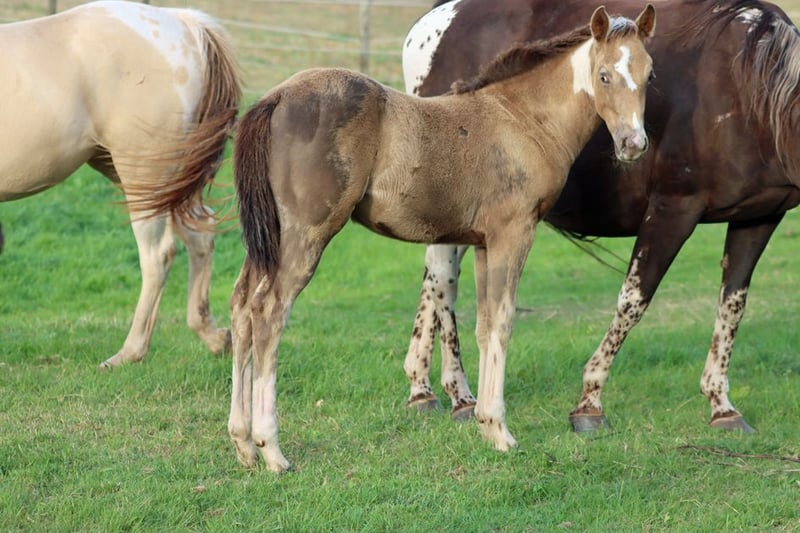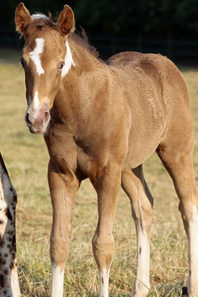 CHEYENNES VUDUTELLA Classic Champagne Tobiano APHA mare. Born: 24.05.2025 Expected height approx. 150 cm 7 Panel N/N Ee aa CHch Tt