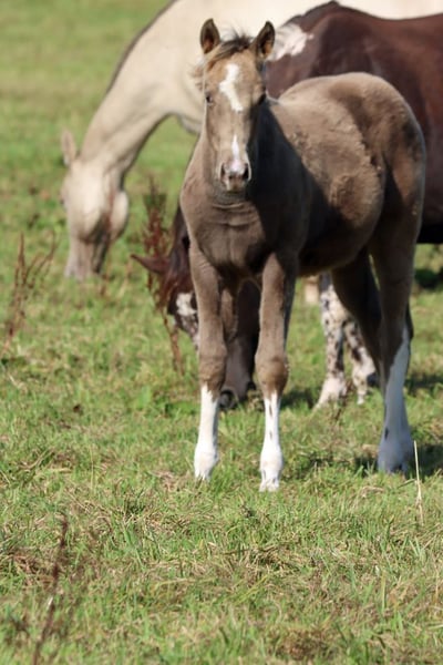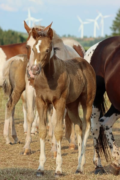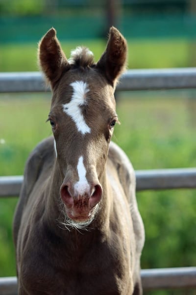 CHEYENNES VUDUTELLA Classic Champagne Tobiano APHA Stute. Geboren: 24.05.2025 Endgrösse ca 150 cm 7 Panel N/N Ee aa CHch Tt