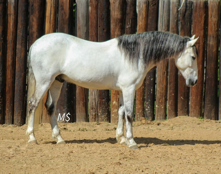 "AVAILABLE ON ONLINE HORSE AUCTION AT www DOT PlatinumEquineAuction DOT com BIDDING OPEN NOW thru SUNDAY | APRIL 26TH! *Final price will be determined on auction site* CONSIGNOR CONTACT INFO: M $ Performance Horses & Ponies 661-817-9120 LOCATION: Whitesboro, TX Patron is a stunning 10-year-old grey Andalusian gelding standing 14.2 hands tall. This kind-natured gelding has been part of a drill team and is primarily an arena horse, though he’s also been used outside for gathering cattle and enjoys trail rides. Patron has a little extra pep in his step, making him a fun, forward-moving ride. He’s brave, willing, and goes wherever you point him without hesitation. Traffic safe and confident, he’ll cross tarps, logs, and handle hills with ease. In the arena, he’s a gorgeous mover with smooth, floating gaits. He walks, trots, and lopes nice circles with easy, clean transitions. On the ground, he’s a true gentleman—stands tied quietly, good for the farrier, and loads and unloads with no trouble. Patron is the total package: kind, capable, and easy on the eyes. Located in Whitesboro,Texas We are open to anyone interested in him to schedule a time to come see him or if you can’t make it schedule a FaceTime showing to see him. 661-817-9120 call or text for more info. If you need help with transport don’t hesitate to ask we have a list of reputable haulers that can get him safely to your doorstep WORLD WIDE including, Alaska , Mexico, Hawaii, Canada and anywhere in between.