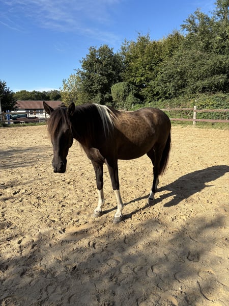 Herzenspferd Tony sucht sein Für-Immer-Zuhause Manchmal führt das Leben in Richtungen, die man sich nicht wünscht. Deshalb suchen wir für unseren Tony ein liebevolles, dauerhaftes Zuhause, in dem er bleiben darf. Steckbrief • Name: Tony • Alter: 10 Jahre • Stockmaß: ca. 1,53 m • Preis: VB 8.000 € — Platz vor Preis, ganz definitiv Charakter & Umgang Tony ist ein absoluter Herzensbrecher: sehr fein an der Hand, aufmerksam und immer bemüht zu gefallen. Er achtet sehr auf seinen Menschen, hat keine Unarten und hat noch nie böswilliges Verhalten gezeigt. Im Umgang ist er ein sensibler, liebevoller Partner, der Vertrauen schenkt und gerne lernt. Einsatz & Fähigkeiten Tony wird als Freizeitpferd verkauft. Er ist am Boden und unter dem Reiter sehr fein, hört gut zu und lernt schnell. Beim Ausreiten ist er absolut verlässlich – eine richtige Lebensversicherung im Gelände. Auch kleine Sprünge und Longieren kennt er. ❗ Wichtig: Tony ist kein Gewichtsträger, daher wünschen wir uns einen Reiter, der diesem feinen Pferd gerecht wird. Haltung Tony steht aktuell im Offenstall mit 24/7 Weidegang; im Winter kommt er nachts in den Stall – genau diese Haltung wünschen wir uns auch für sein neues Zuhause. Er ist sozial, verträglich und fühlt sich in Gesellschaft anderer Pferde wohl. Steht aktuell in Langenfeld. Verkaufsgrund Tony wird aus gesundheitlichen Gründen des Besitzers verkauft. Es handelt sich nicht um Verhaltensprobleme, sondern um eine traurige Lebenssituation, die eine Neuplatzierung nötig macht. Näheres gern beim persönlichen Kennenlernen. Wichtiges & Konditionen • Probereiten nach Absprache möglich (Unkostenbeitrag 25 €, wird bei Kauf rückerstattet) • Platz vor Preis – Tony soll nur in beste Hände • Verhandlungsbasis: 8.000 € VB