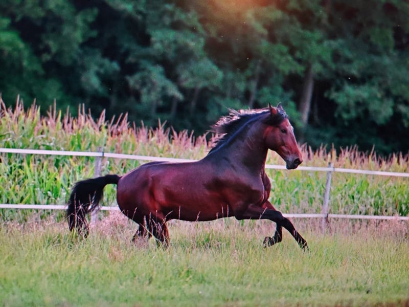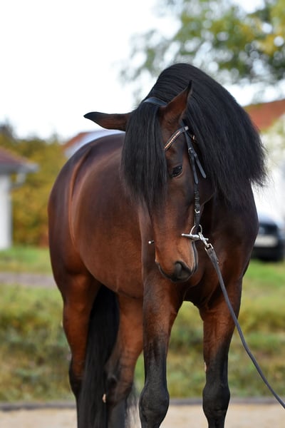 Zum Verkauf steht ein attraktiver PRE Wallach (9 Jahre, Stockmaß 169 cm) mit solider Ausbildung auf L/M-Niveau. Erste Galoppwechsel wurden bereits begonnen. Piaff und Passage sind ihm bekannt, wurden von mir aber nicht weiter verfolgt. Kleinere Hüpfer über Cavaletti meistert er mit sehr viel Freude! Der Wallach überzeugt durch seine zuverlässige und unkomplizierte Art im täglichen Umgang. Er kennt alle üblichen Abläufe im Stall, geht regelmäßig in die Führanlage und zeigt sich dabei stets gelassen und kooperativ. Beim Schmied (barhuf), Tierarzt (bisher nur zum Impfen) sowie bei osteopathischen Behandlungen (rein prophylaktisch) ist er vorbildlich und sehr umgänglich. Er ist ein sehr verschmustes Pferd, welches sich an seinen Reiter/ Pfleger stark bindet. Er ist sozialverträglich und kommt sowohl mit anderen Pferden auf der Weide als auch auf der Zustellkoppel gut zurecht. Aktuell steht er in einer Paddockbox, in der er sich sehr wohl fühlt, kennt aber ebenso Boxenhaltung sowie Offenstall. Unter dem Sattel wünscht er sich einen ruhigen, souveränen Reiter. Insgesamt handelt es sich um einen aufgeschlossenen, sympathischen und leistungsfähigen Wallach mit besonderer Ausstrahlung. Hänger- und Transporter kennt er und stellen kein Problem dar. Auswärtstraining wurde auch getestet und auch hier war er vorbildlich! Ausbildung erfolgte in Spanien und die Förderung in Deutschland erfolgt weiterhin durch einen renommierten Pferdewirtschaftsmeister sowie eine Dressurreiterin bis Klasse S**. Der Wallach befindet sich in sehr guter Kondition! Ein passender Sattel kann auf Wunsch miterworben werden. Bei ernsthaftem Interesse und weiteren Fragen stehe ich Ihnen gerne zur Verfügung. Pferd steht in der Nähe von Kitzingen. Abzugeben wegen Umstieg. Vhb