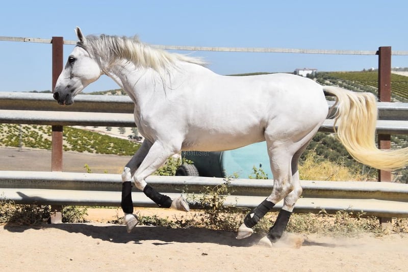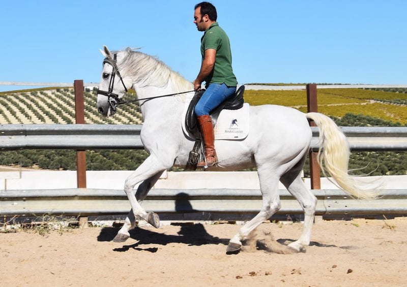 Caractère doux, monté en allures de base, principalement en extérieur, Feria, Romería, Rocío, adapté aux cavaliers moins expérimentés. www.elegante-andalusier.com